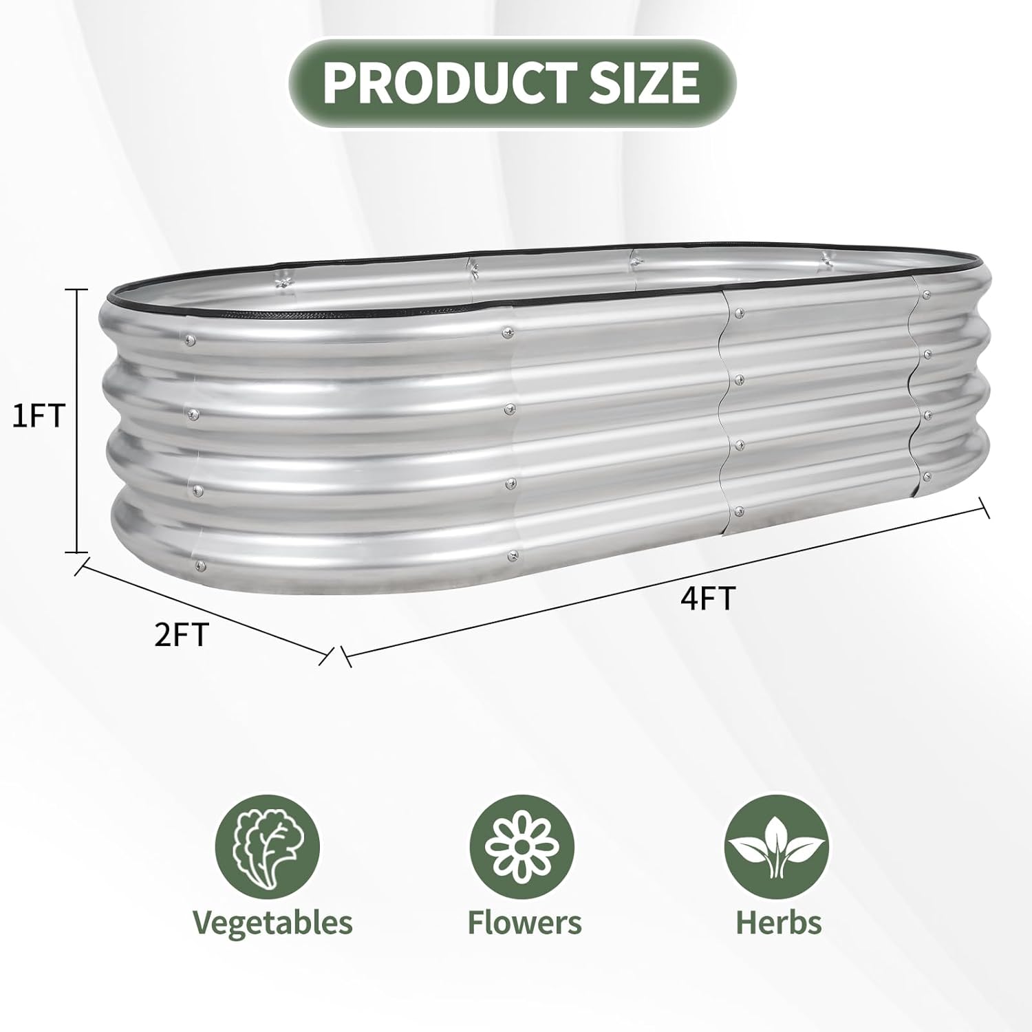 • 【High-quality materials & Durable】 Our outdoor raised garden bed is made of 0.5mm galvanized metal sheet, with double-layer anti-corrosion galvanization and an oval-shaped design. It is resistant to corrosion and rust, providing a long-lasting gardening solution that can be reused for many years.