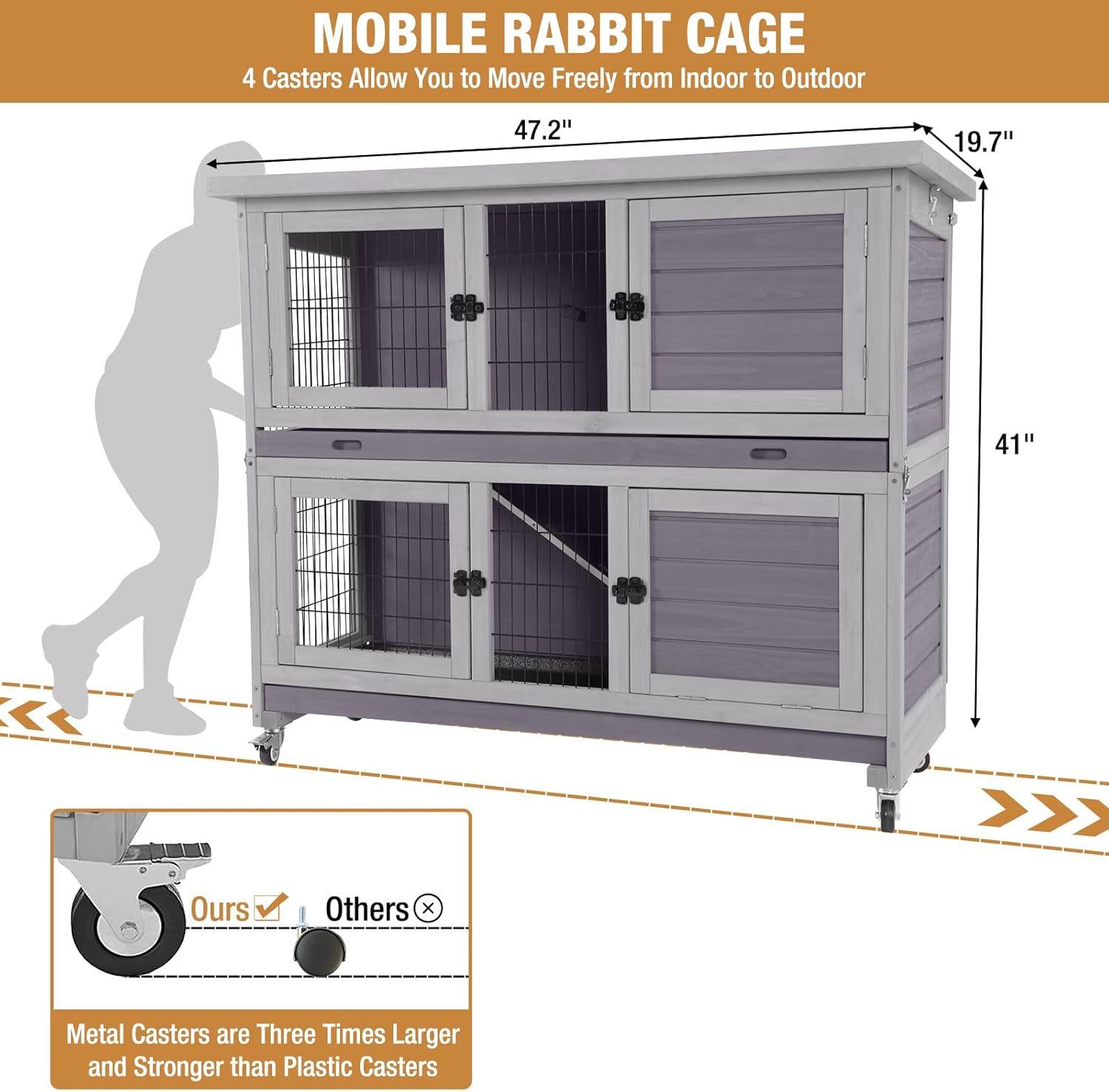 • Easy To Clean: Two levels rabbit cage with two removable plastic trays for easy cleaning. Easily reach all areas of the coop with four access areas