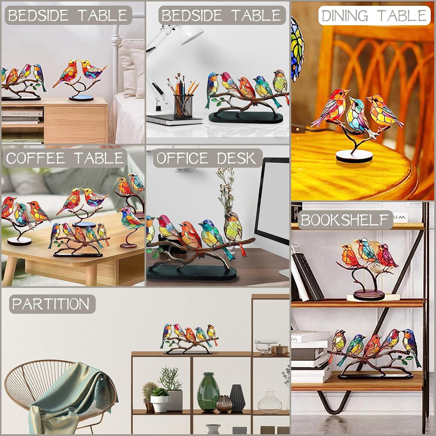 • 【Colorful Bird Decorations】_ Five vividly painted birds on a branch add a cheerful touch to any space, making them perfect bird decorations for desks, shelves, or windows
