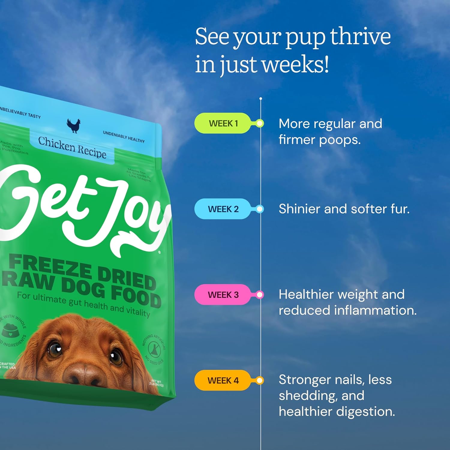 Get Joy Gut Health Fresh Freeze Dried Raw Meal, Chicken Recipe, 32 Ounce Bag, Dog Food for Dogs of All Breeds and Life Stages, PhD Animal Nutritionist Formulated, Made in USA