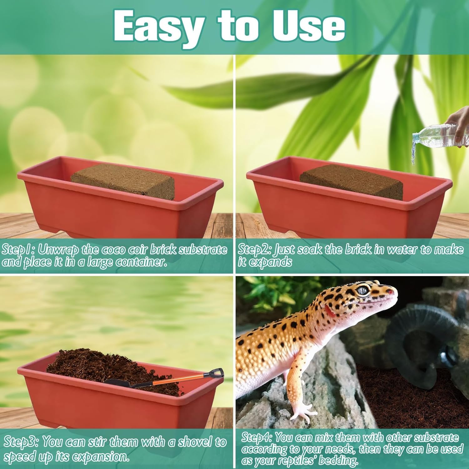- ๐ฆ ๐ต๐๐๐๐๐๐ ๐ถ๐๐๐๐๐๐ ๐ช๐๐๐๐๐๐ ๐ญ๐๐๐๐ ๐๐๐ ๐ณ๐๐๐๐๐๐ ๐ฎ๐๐๐๐๐: Halatool's leopard gecko substrate contains two 7.87"x3.94"x1.97" bricks (1.4lb each) of pure coconut husk fiber - enough to fill a 4.2-gallon terrarium. This organic, reusable bedding is cleaned with no dirt or foreign substances, providing the safest leopard gecko bedding for sensitive reptiles