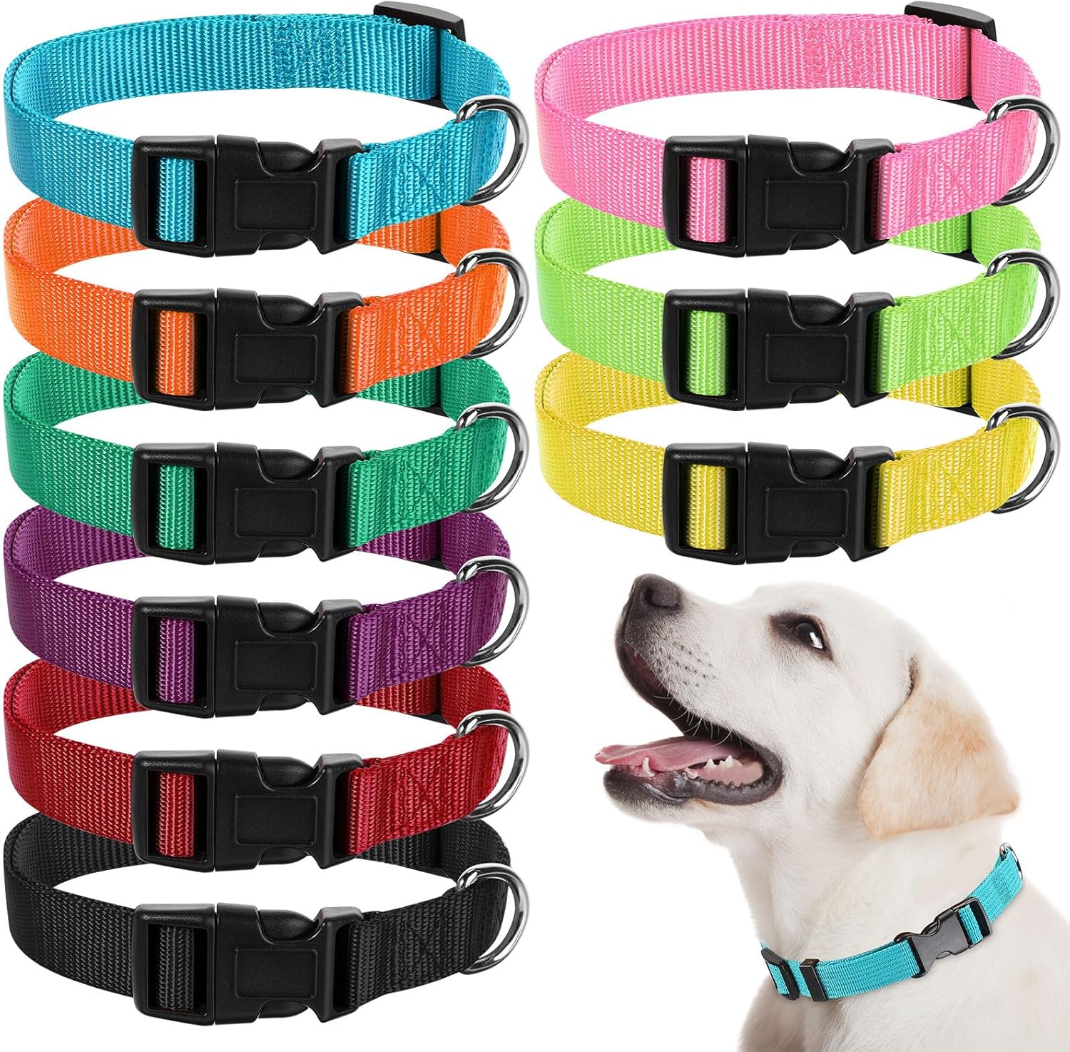 • Package Includes: you will receive 9 pieces of dog collars in 9 diverse colors, namely black, green, fluorescent green, pink, fluorescent yellow, orange, purple, maroon, lake blue, enough quantity for your pet use and replacement