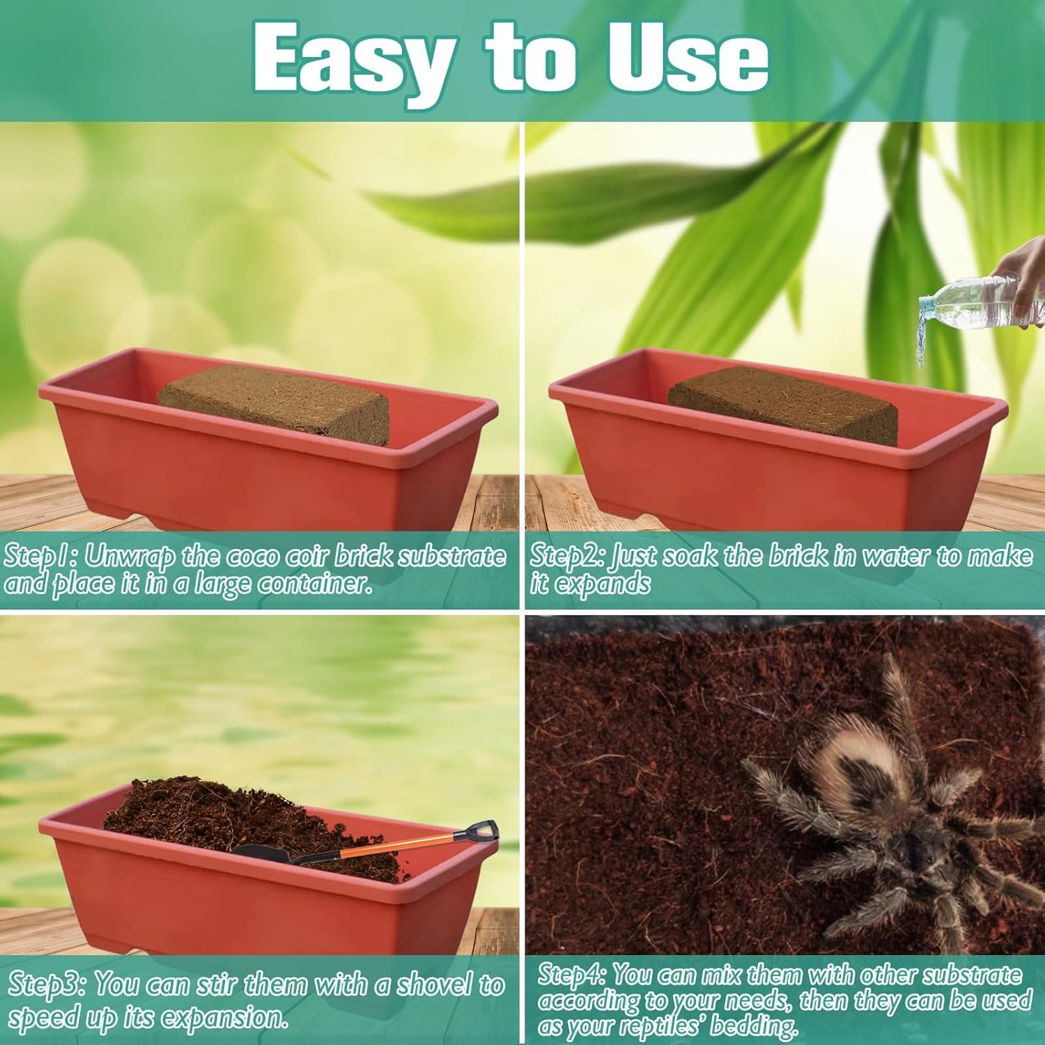 • Minimize Odor & Break Down Waste: Our coconut fiber substrate for reptiles can minimize odor and break down waste. It can provide a clean, comfortable living environment for your reptiles. Maintain substrate health and make reptiles feel more like at home