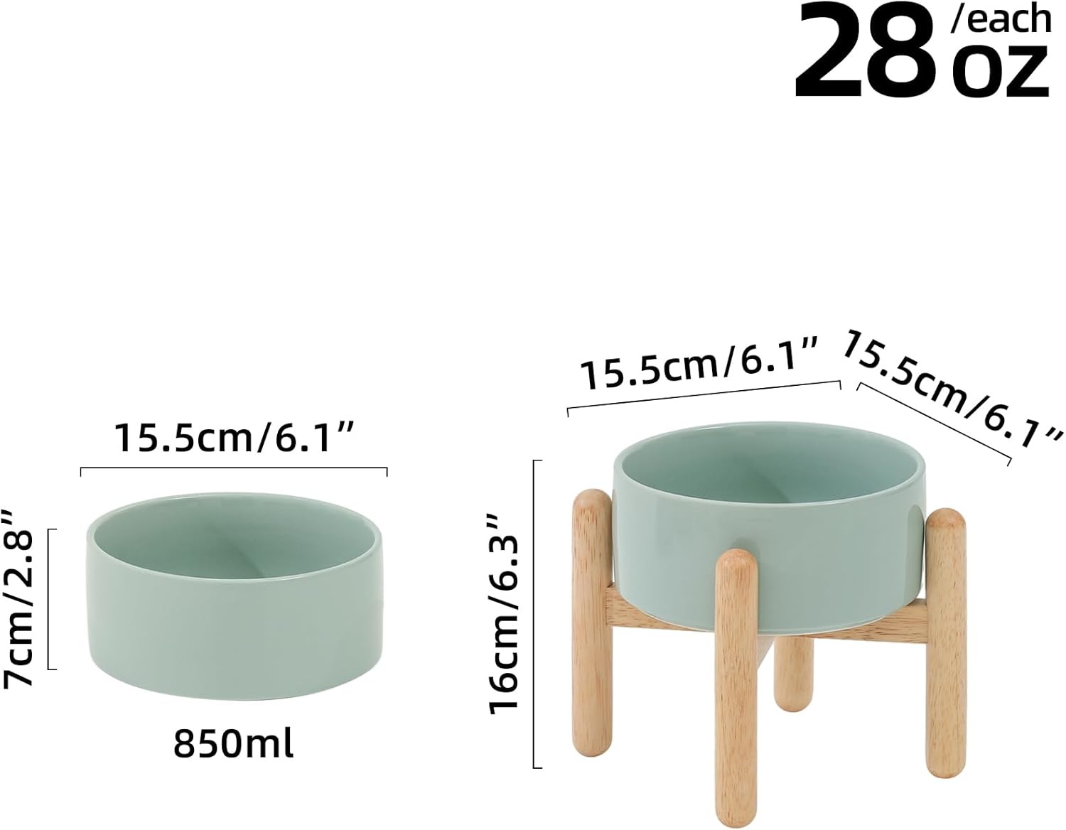 Ceramic 6.1inch Raised Dog Bowl with Stand for Small and Medium Dog Dish Pet Food and Water Bowl (Single Bowl with Stand - Light Green)
