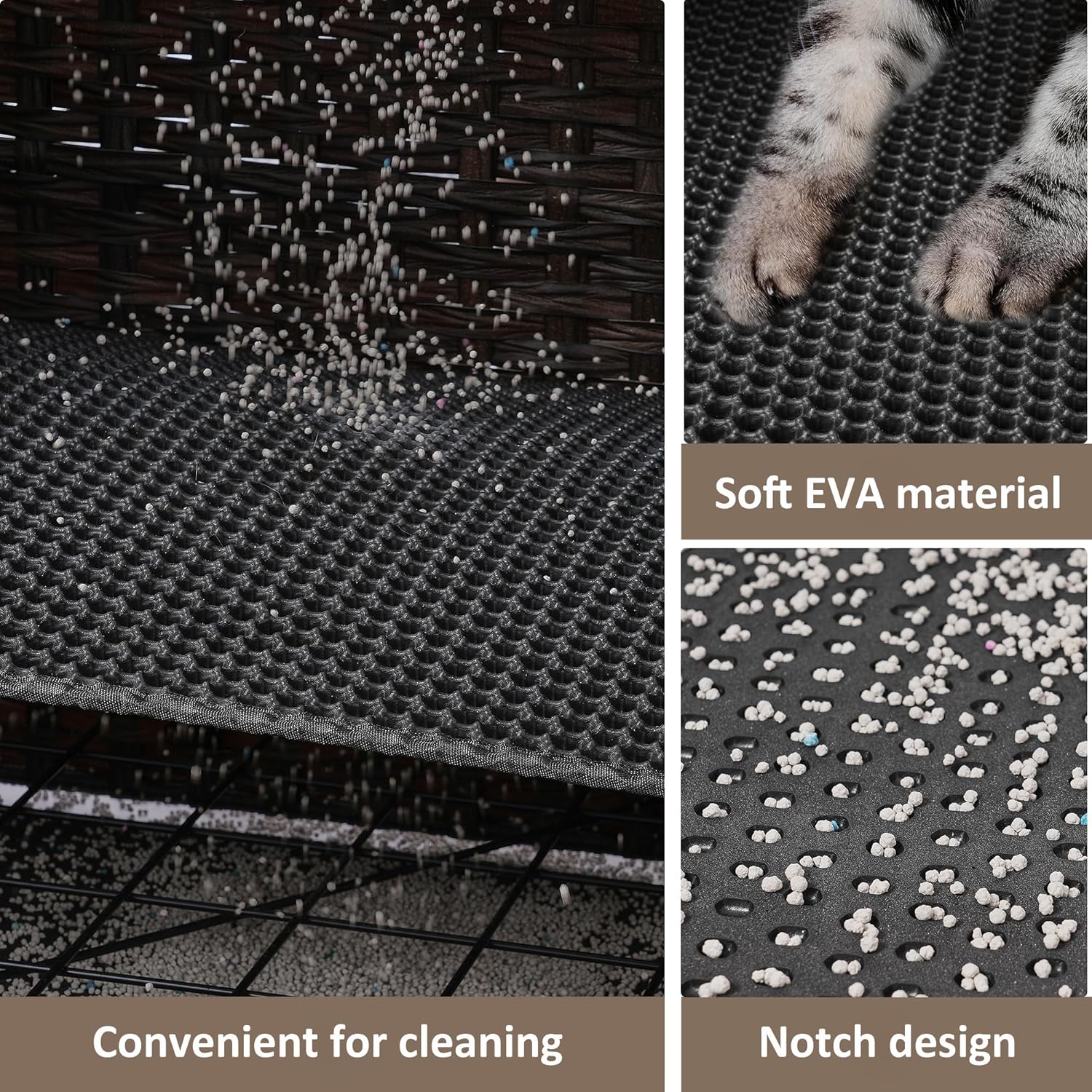 • 【Easier Cat Care】The cat washroom is built with soft litter mat which allows cats to walk comfortably. More importantly, the litter mat is designed with large holes so that the scattered cat litter can drop on the bottom mat. And then you can pull the bottom mat out, dump the scattered cat litter, saving you the trouble of cleaning up scattered cat litter every day.
