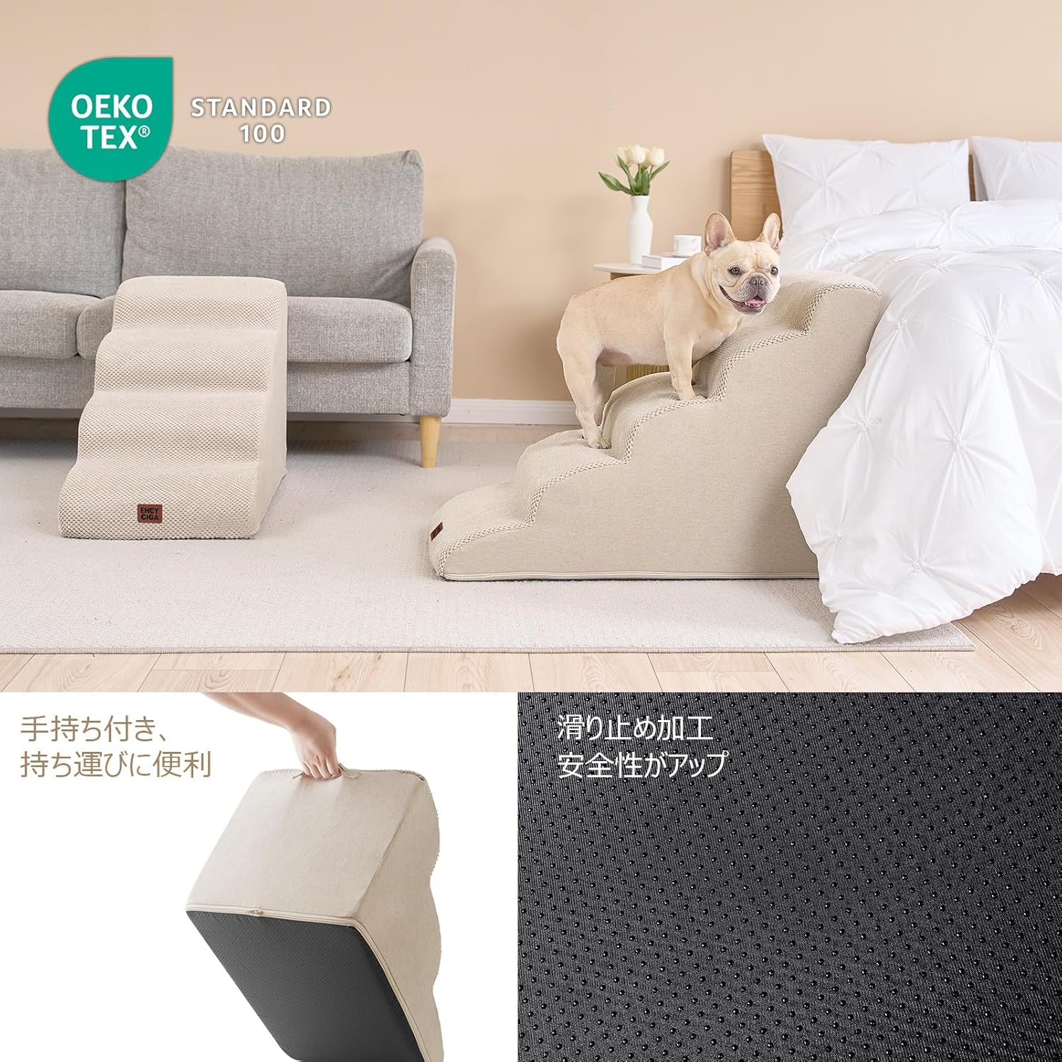 • COMFORTABLE PET STAIRS - This foam dog stair is designed directly against the edge of a bed, sofa or other furniture, so your pet can climb up and down comfortably.