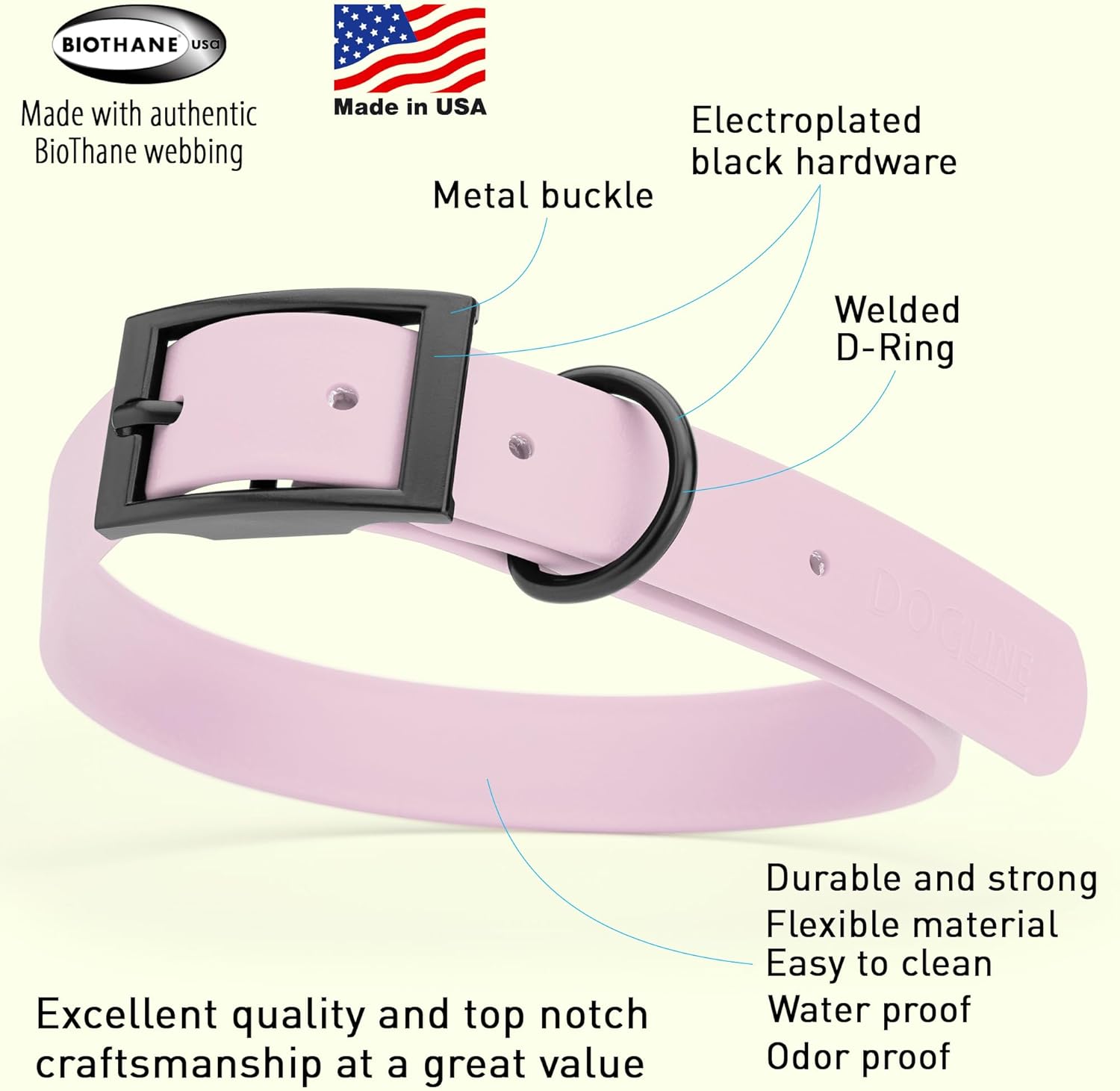 Dogline Biothane Waterproof Dog Collar Strong Coated Nylon Webbing with Black Hardware Odor- Proof for Easy Care Easy to Clean High Performance Fits Small Medium or Large Dogs, Pastel Purple