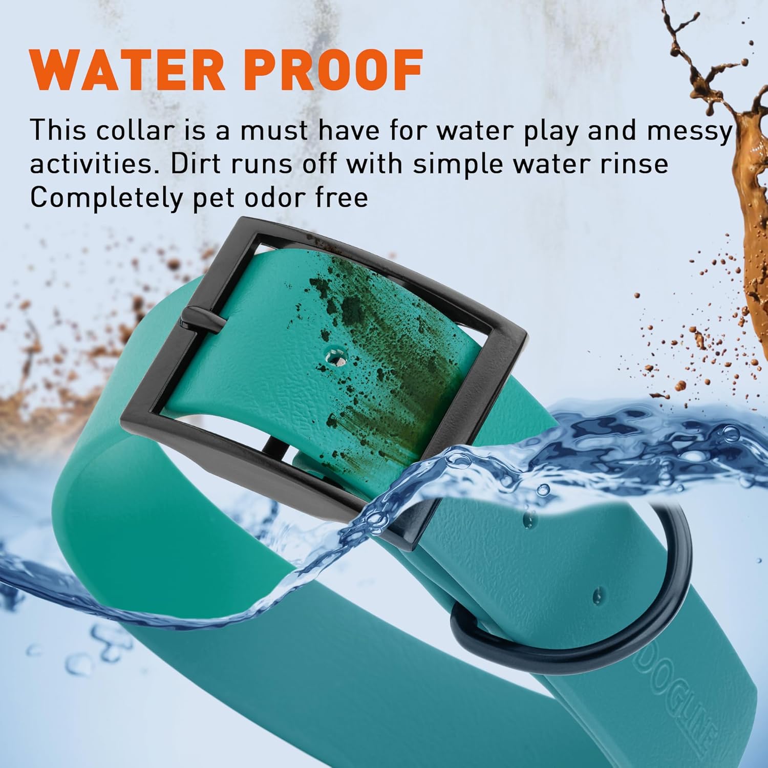 Dogline Biothane Waterproof Dog Collar Strong Coated Nylon Webbing with Black Hardware Odor- Proof for Easy Care Easy to Clean High Performance Fits Small Medium or Large Dogs, Blue Aqua