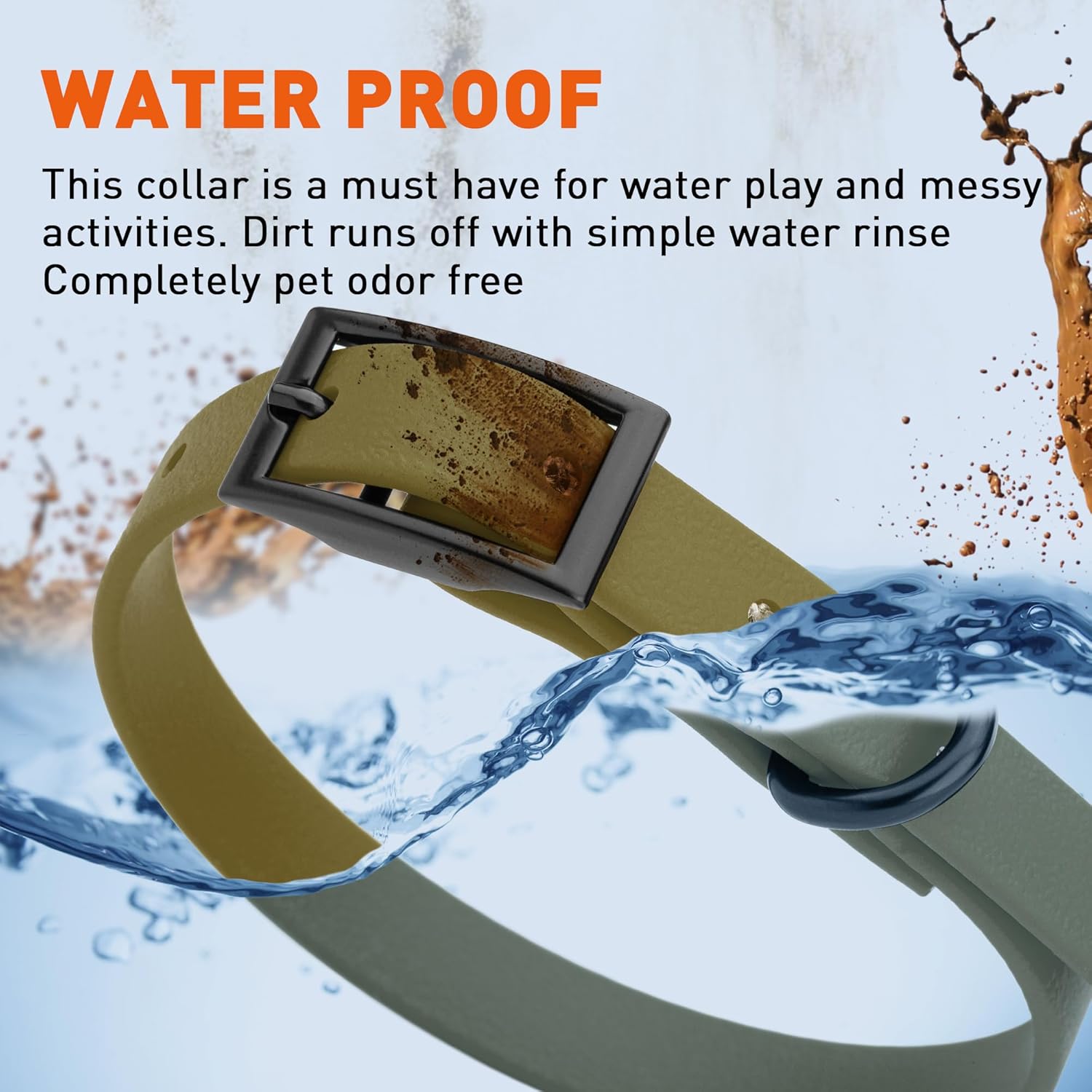 Dogline Biothane Waterproof Dog Collar Strong Coated Nylon Webbing with Black Hardware Odor- Proof for Easy Care Easy to Clean High Performance Fits Small Medium or Large Dogs, Olive Drab Green