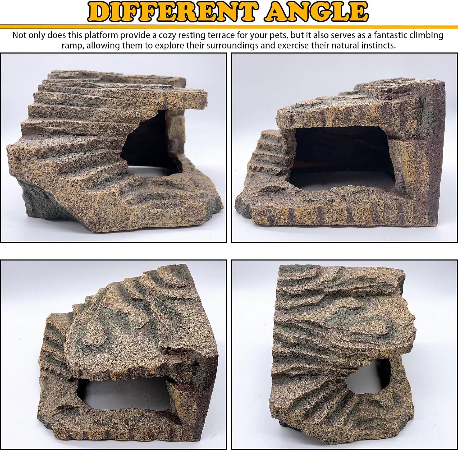 • 【PLAY AND REST】Your reptiles get a natural opportunity to hide or play, satisfying a healthy desire for coolness, privacy and protection; Provides and elevated platform for your pet to bask and warm up.