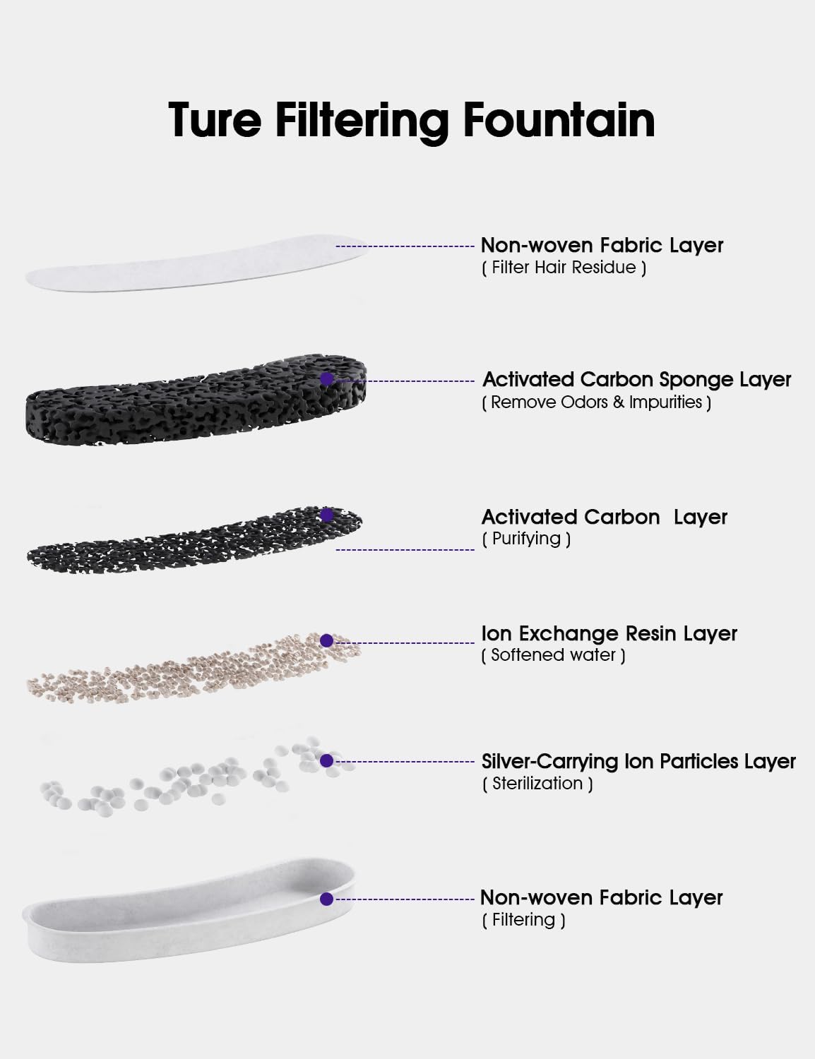 • Usage Method-please rinse the carbon filter in water for 5 minutes thoroughly before use, then install the cat fountain filter into the cat drinking fountain.