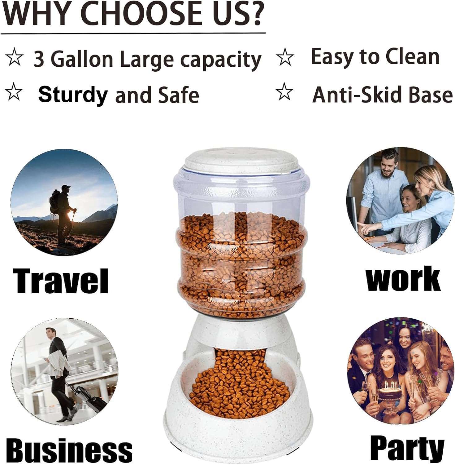 Automatic Dog Feeders, Dog Feeder Dispenser for Large Dogs, 3 Gallon Gravity Automatic Dog Cat Feeder Station, Dry Food Storage Container Bowl for Adult Dogs