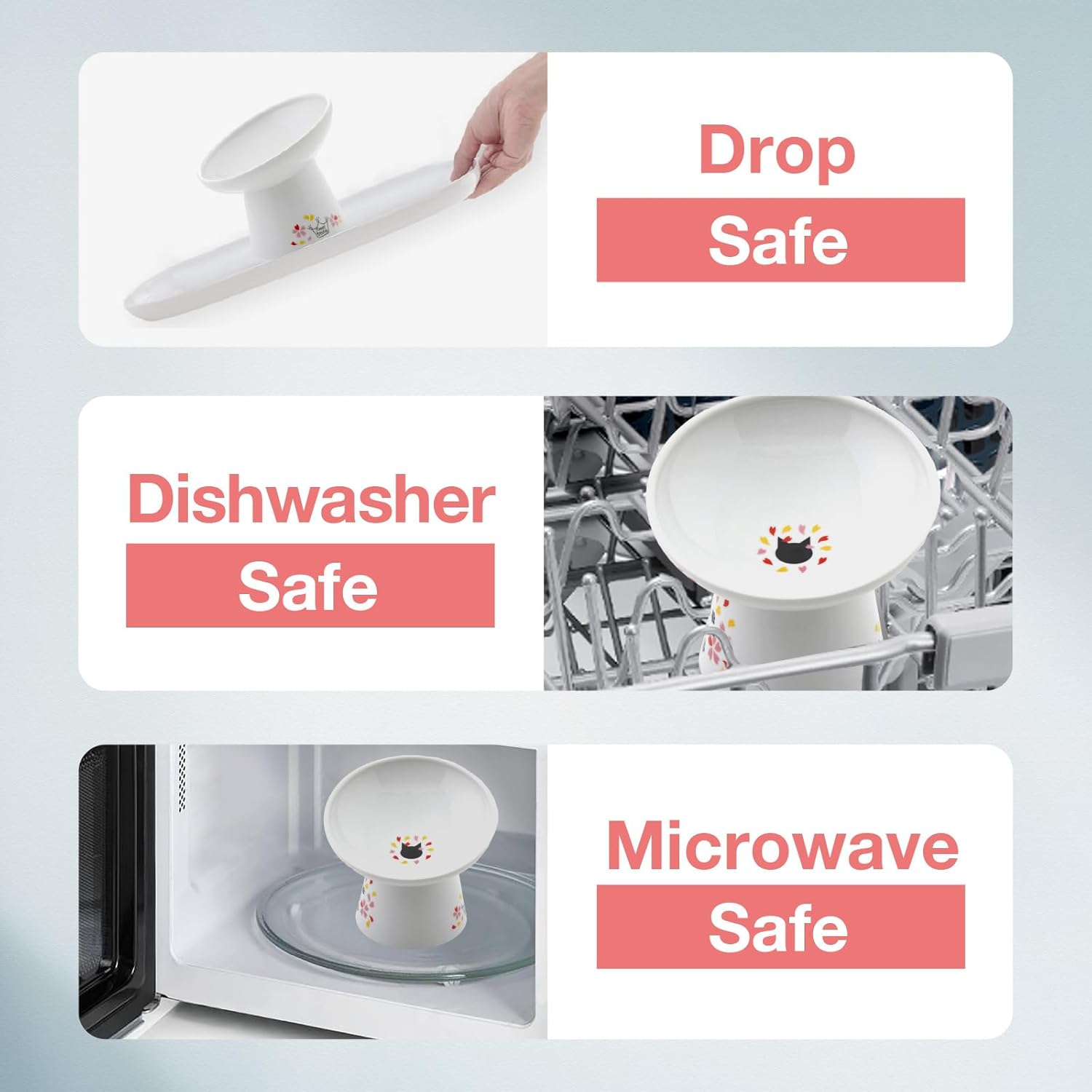 • Necoichi’s largest bowl yet! Bowl measures 6.1 x 5.7 inches in diameter, 1.8 inches deep and 5.3 inches tall, which when combined with the tilted lip, resolves any issues that certain breeds may have encountered with previous bowl types. The tilted lip makes it even easier for flat-faced cats and messy eaters to dine with less difficulty and stress.