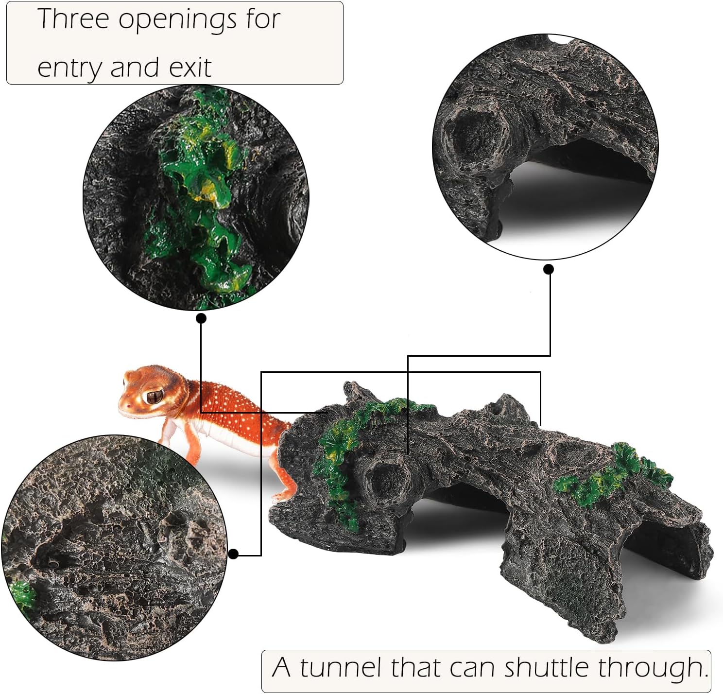 • Size – 3 choices with different size are provided to fit different fish and pets (Please read the measurement pic for details). This terrarium décor also makes a comfortable and natural hide for small snake bearded dragon, leopard gecko, tortoise and lizards, etc.