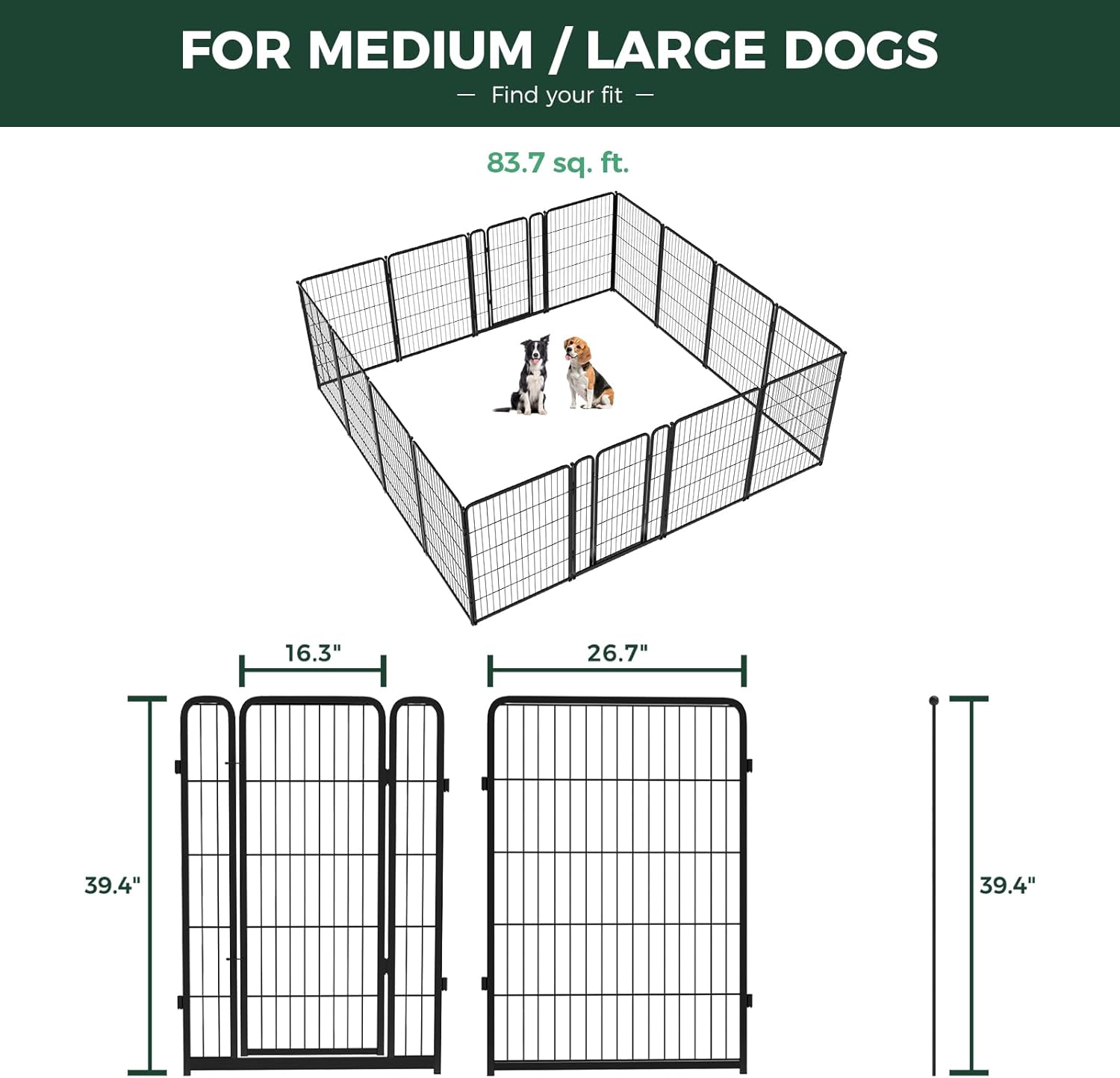 FXW Homeplus Unleashed Indoor Dog Playpen - Stress-Free and Safe Play, Heavy Duty 40 Inch 16 Wire Panels Dog Pen for Medium and Large Dogs, Black│Patented