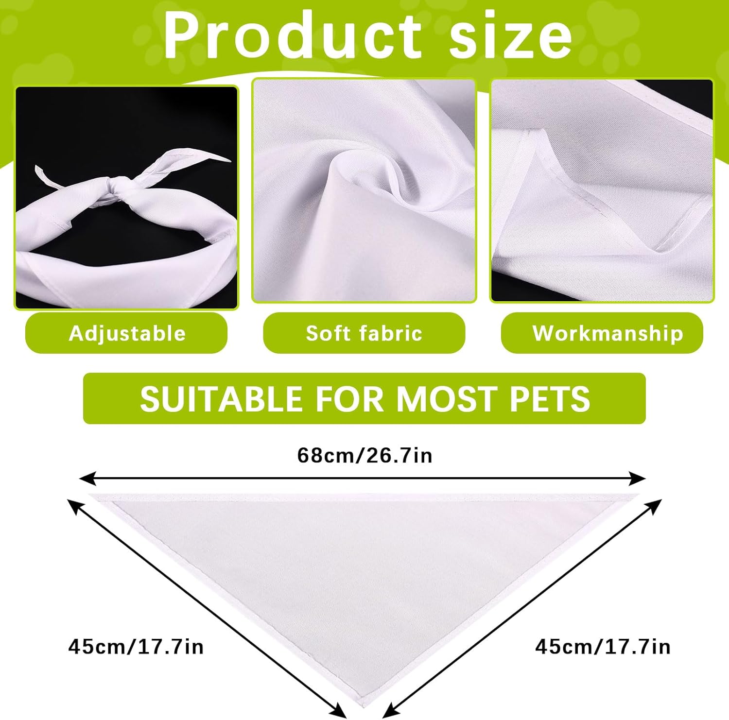 • 【A wide range of applications】:Pure white dog bandana can be freely designed scarf, so that your pet is cute and fashionable; Suitable for daily walks, holidays, birthdays, pet-themed parties, photography, party costumes, festival wear and other occasio .