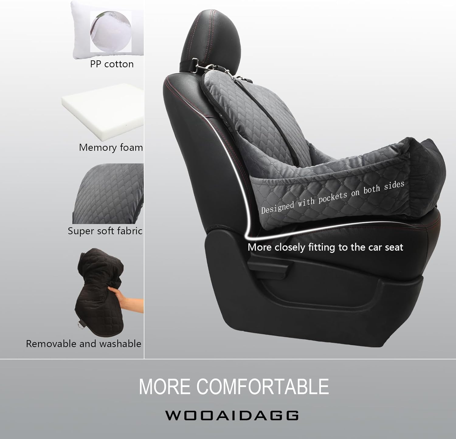 • Comfortable:Wooaidagg dog seat made in ultra-soft short plush fabric and filled with PP cotton and memory foam,our dog car bed design ensures a snug fit with your car seat,we dog car seat ensuring their utmost comfort and reducing anxiety and fatigue
