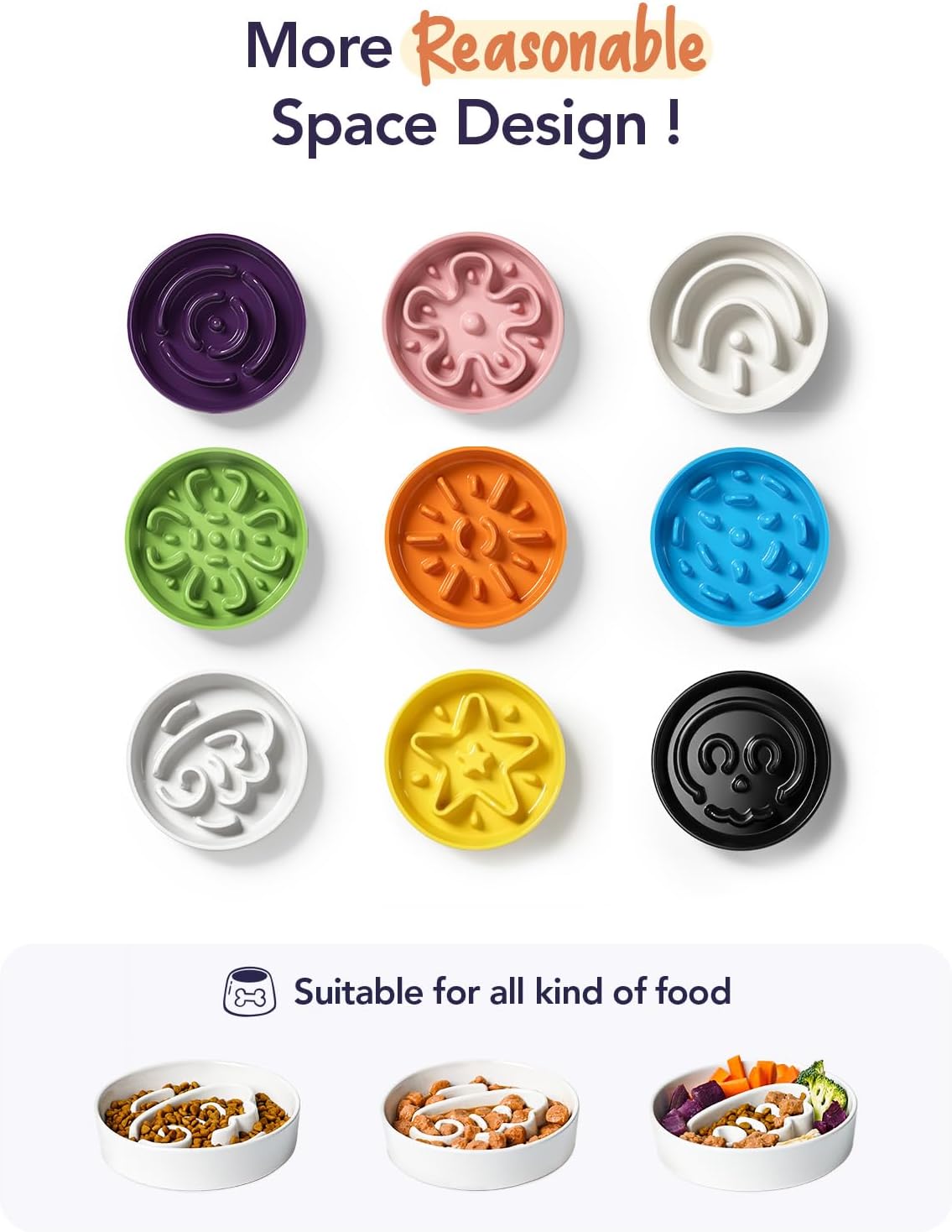 • Slow Down Eating, Bring Dog A Healthy Diet: Fast-eating dogs experience bloat, regurgitation, and obesity easily. Our slow feeder dog bowl design with the ridges and maze pattern helps your dog to eat slower than 10 times. Your dog could change his overeating behavior through a challenge and fun mealtime