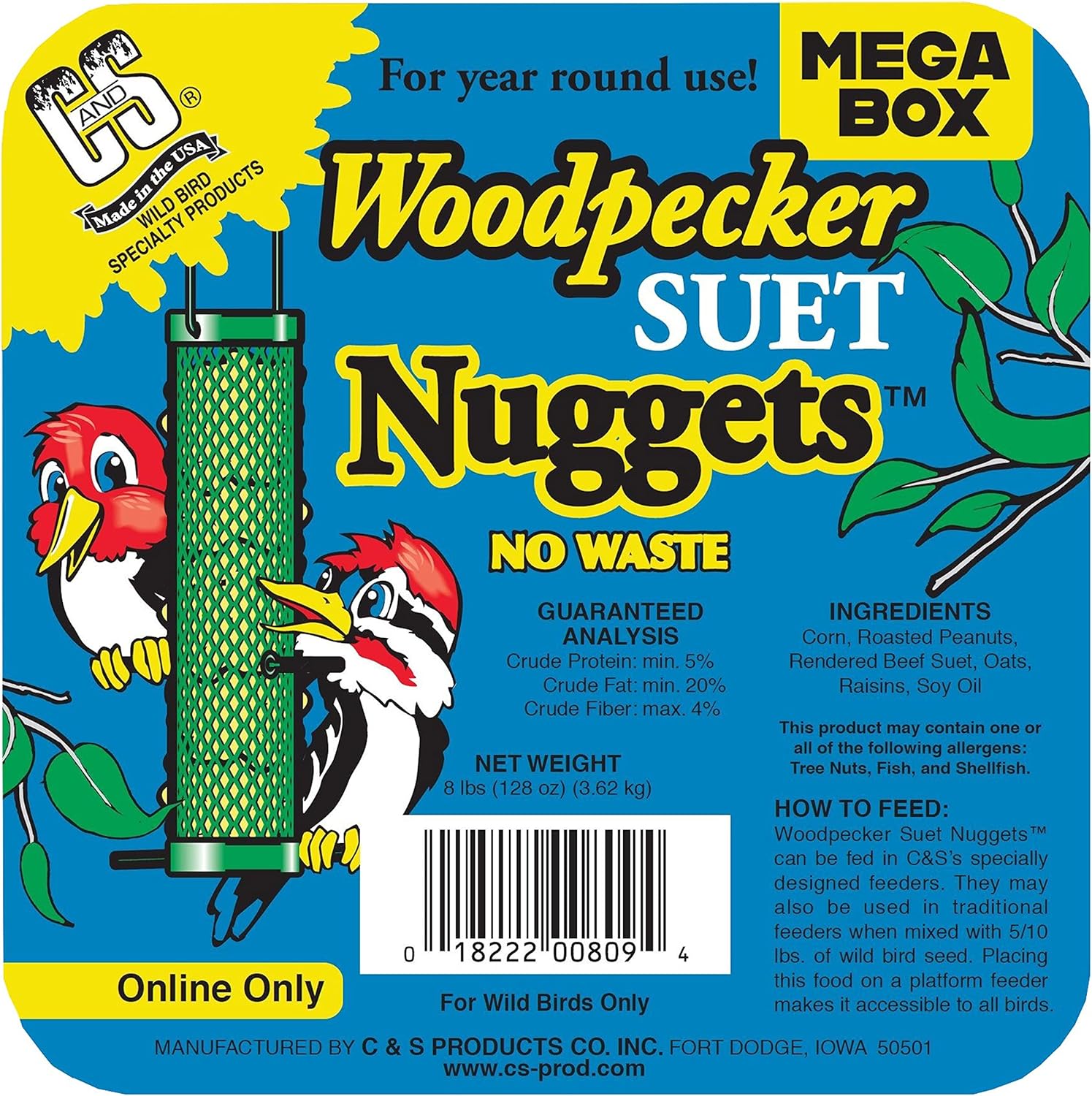 • A VERSATILE FEEDING SOLUTION. C&S Woodpecker Suet Nuggets can be fed alone or mixed with 5-10 lbs of wild bird seed mix.