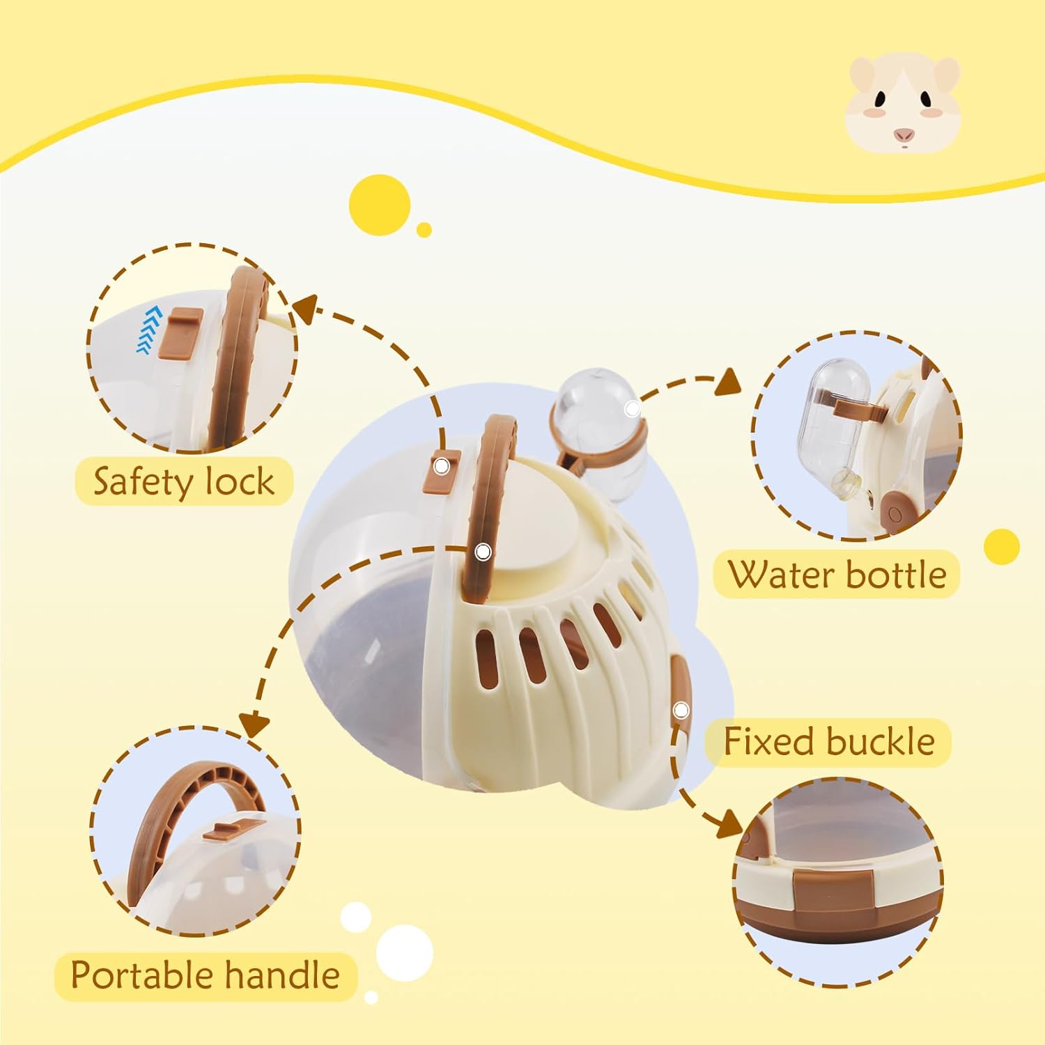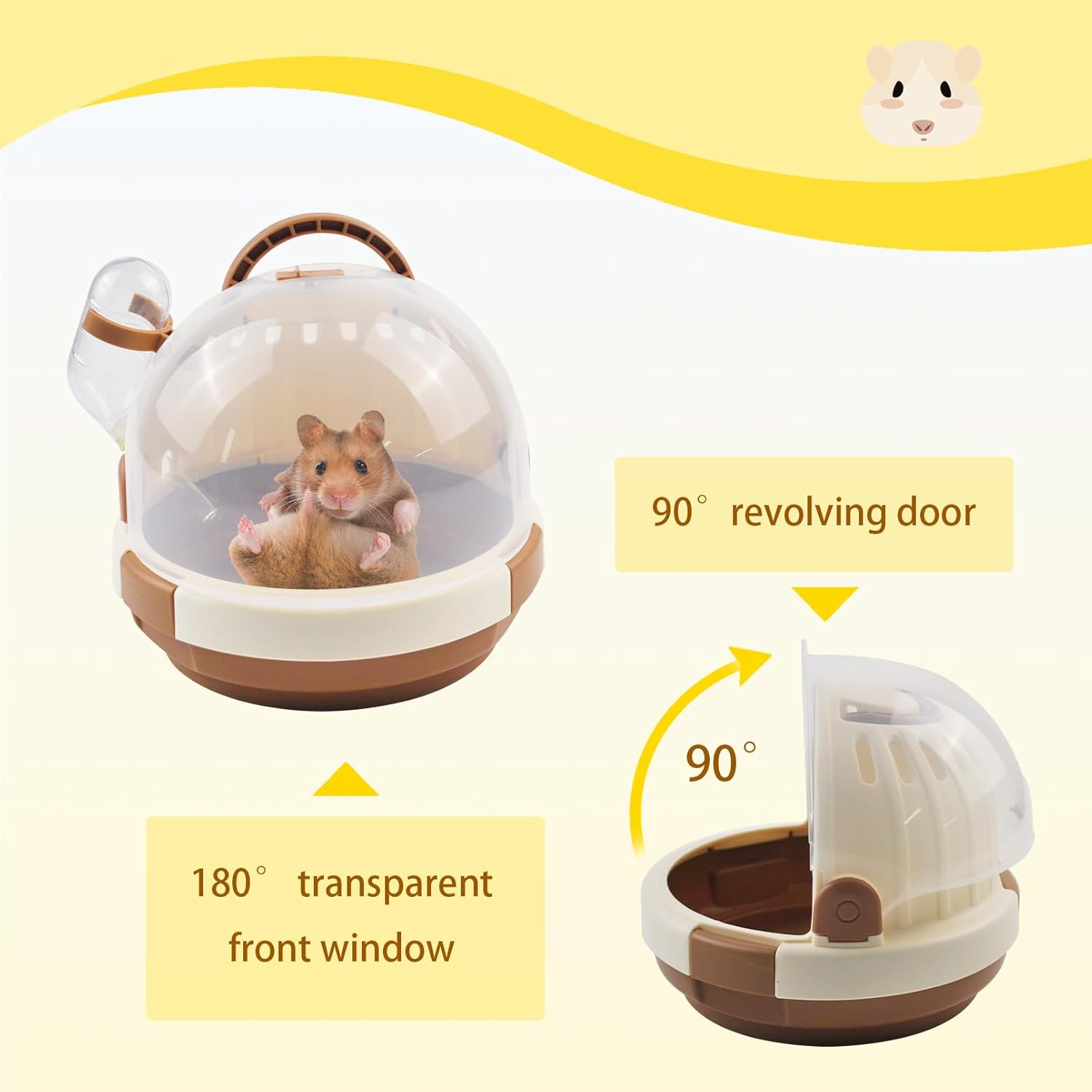 Hamster Carrier Cage Portable Cages Small Animals Carry Travel Case with Water Bottle Plastic Breathable Guinea Pig Outgoing Cage for Dwarf Hamster Ferret Chinchillas Hedgehog (Brown)