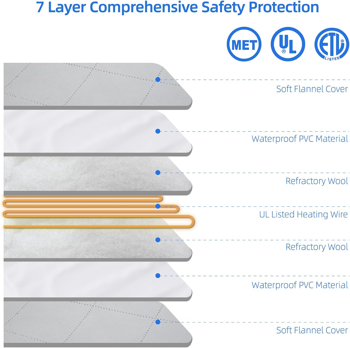• Safety 7-layer Protection Structure: This Pet Heating Pad is made of UL-listed heating wire to protect that pet from burns. The soft PVC shell is waterproof and flame-retardant. The heating pad has a built-in smart temperature sensor to prevent overheating and protect pets. Do not let your pet lie on a pet heating pad that does not have a plush cover.