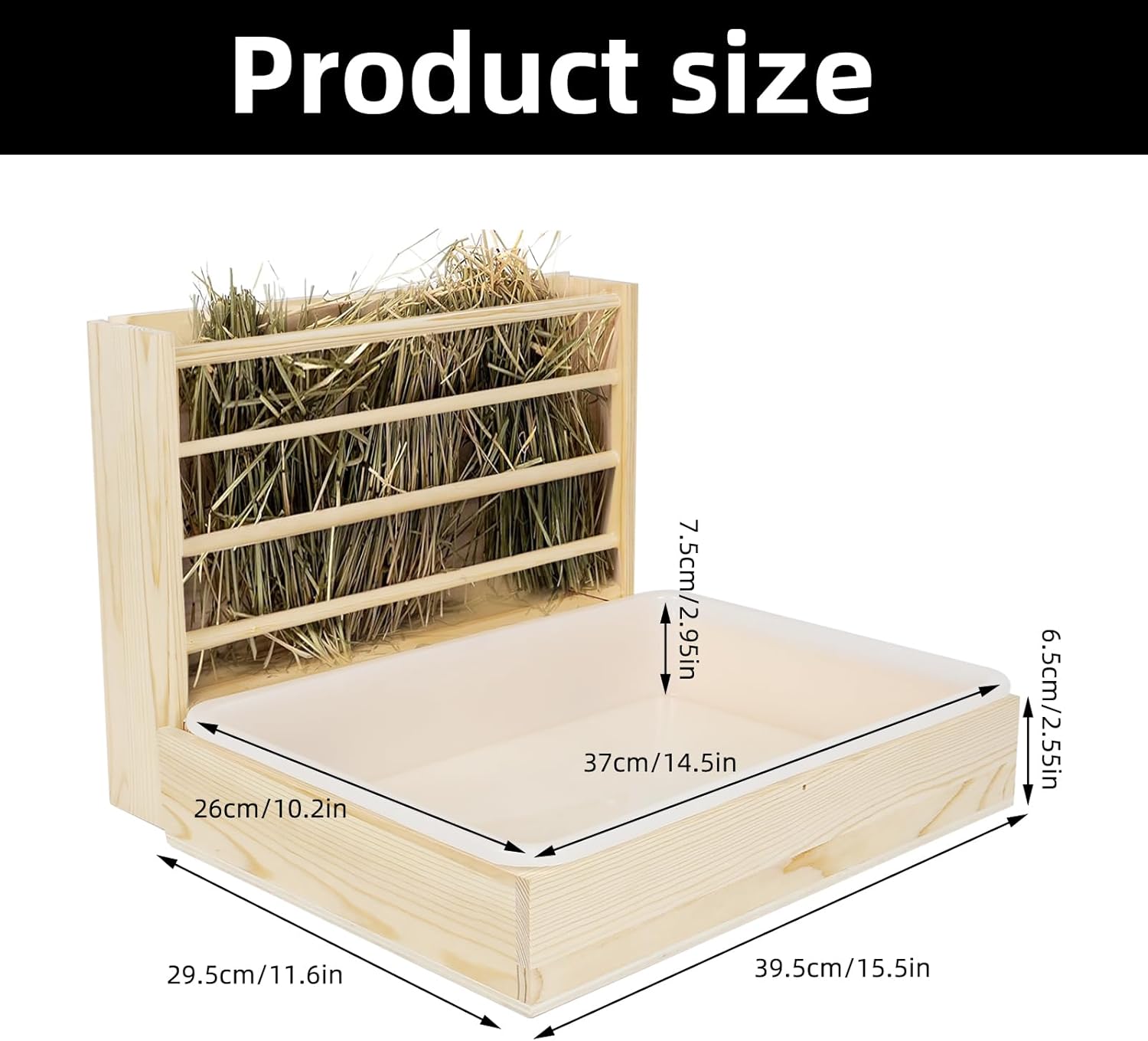 • 【High-Quality Wood】2 in 1 wooden rabbit hay feeder box is made of high-quality wood and plastic, safe and sturdy, wear-resistant and durable, and no harm to small pets, and you can use it with confidence. Warm tips: If you are worried that small animals will slip inside the litter box, you can lay wood shavings or diaper pads inside