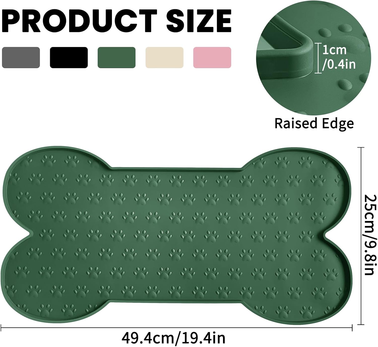 • Health Silicone Material - This pet bowl mat is non-toxic, and non-allergenic, protecting the health and safety of your pet's feeding. 19.4" x 9.8" holds two regular bowls, perfect for small to medium-sized dogs and cats to enjoy a delicious meal tray.