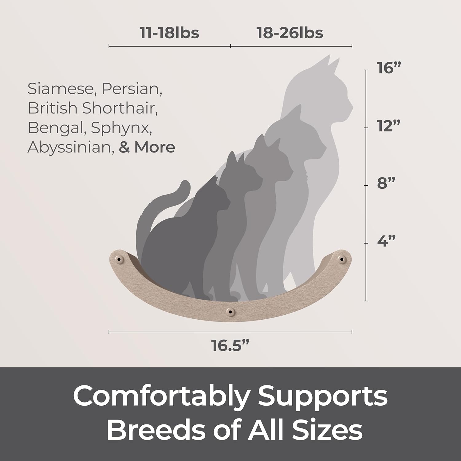 • Pawsitive Impact: Our wall mounted cat furniture is crafted with recycled P.E.T. felt materials, creating a strong, tactile and anti-slip felt to endure daily use. Our patent-pending design offers irresistible softness, perfect for face rubs and head bumps.