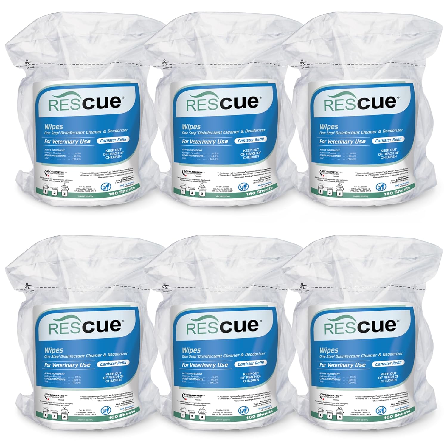 REScue One-Step Disinfectant Cleaner & Deodorizer Wipes for Vet Use – Cleaner for Kennels, Litter Boxes, Vet Offices, Pet Grooming Surfaces, Pet Boarding – Wipes Canister Refill, 160 Count (6 Pack)