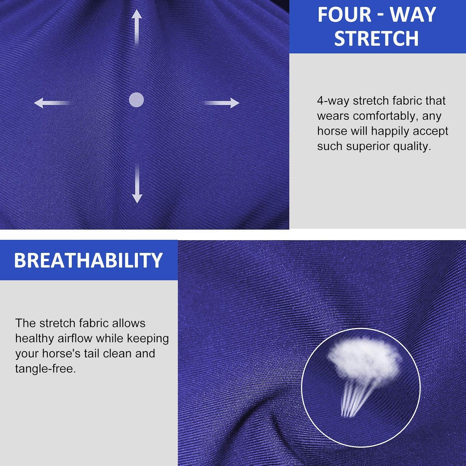• Breathable: High level of breathability allows healthy airflow while keeping your horseโ€™s tail clean, tangle-free, and lasts in all weather conditions.