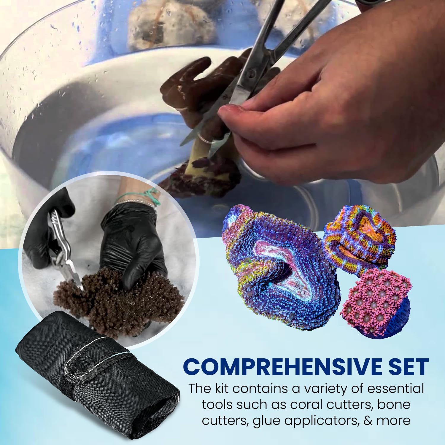 • Comprehensive Set: The kit contains a variety of essential tools such as coral cutters, bone cutters, glue applicators, and more, offering a complete solution for all your coral propagation needs. [frag plug and glue sold separately]