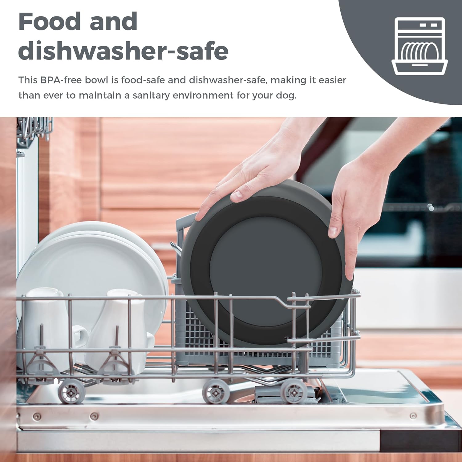 • Non-Slip: The bottom of our dog bowl is made of silicone and will not scratch the floor. Are you afraid that in a quiet resting environment, your pet will make a sound of rubbing against wood and tiles because it eats happily? Our dog bowl basically prevents this situation from happening