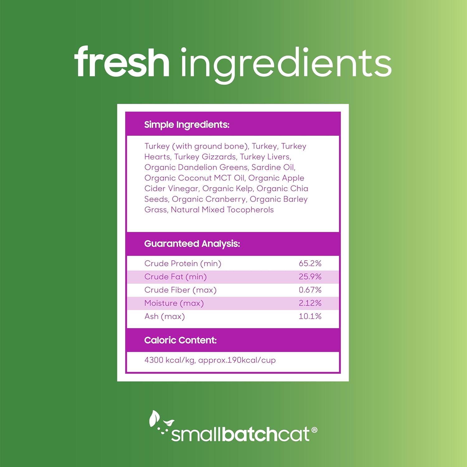smallbatch Pets Freeze Dried Cat Treats, Raw Dry Cat Food Bites, Turkey Recipe, High Protein Food Topper or Training Treats for Cats, Humanely Sourced Meat, Made in The USA, Non GMO, 10 oz Bag