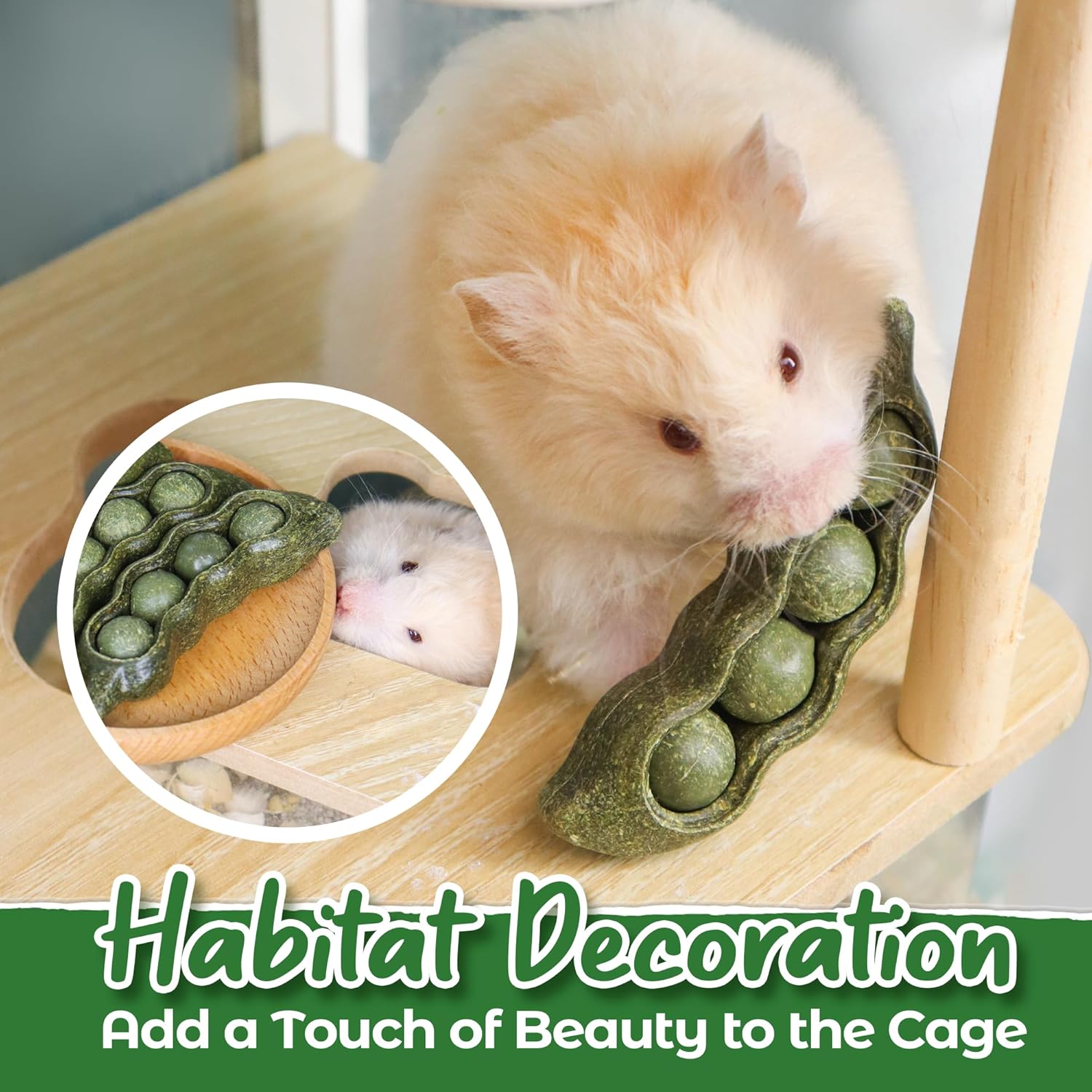 • [ Habitat Enrichment ]: Featuring a vivid peapod shape, the adorable chew toy can also enrich your pet's living habitat