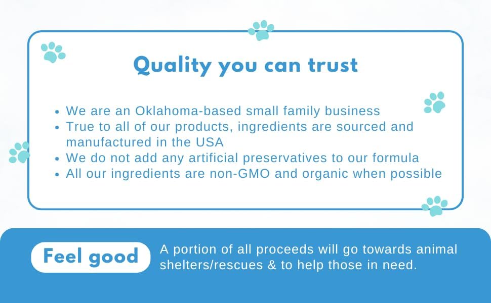 • About us: We are an Oklahoma based, veterinarian owned, family business & appreciate the opportunity to help your pet! All our products are made in the USA. 100% Satisfaction Guarantee!