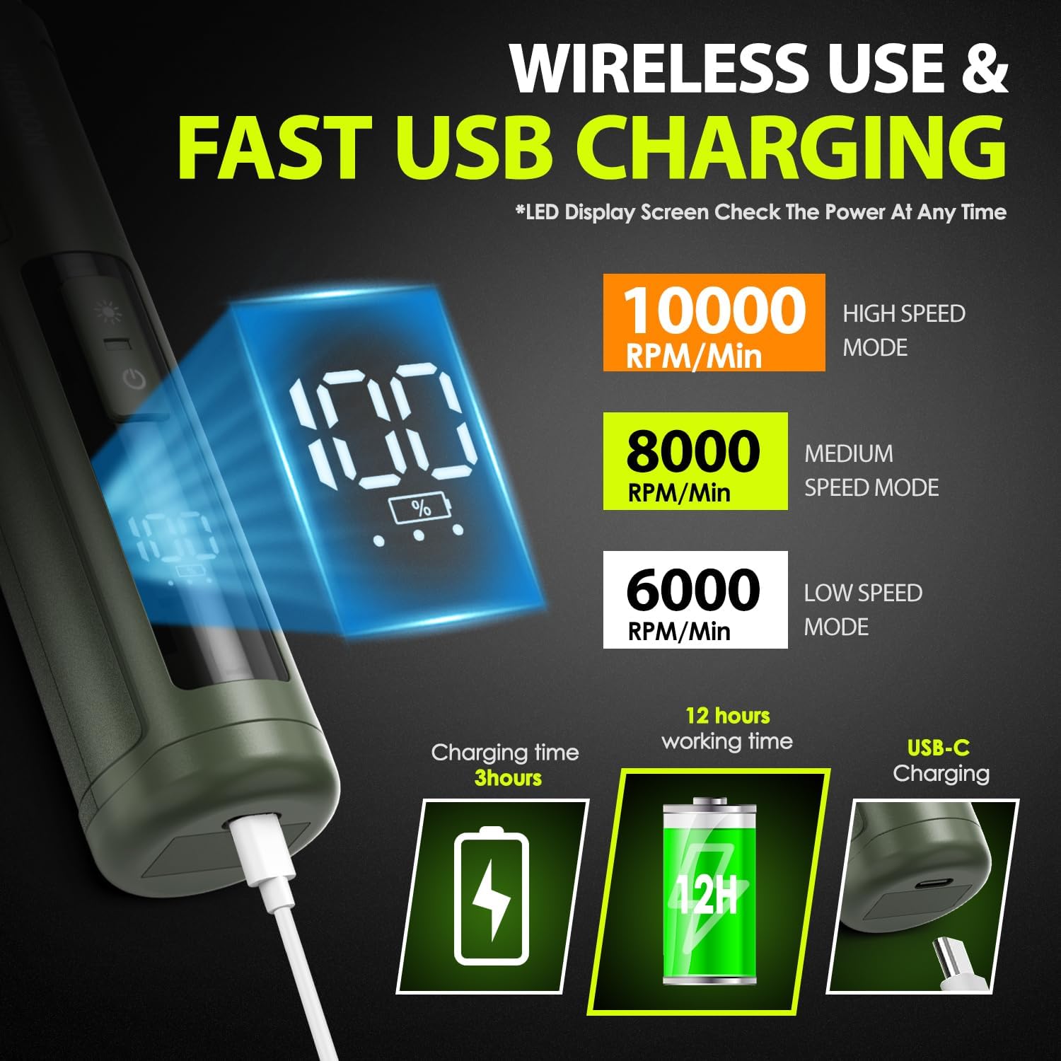 • 【3 Speed Switch & Grinding Ports】: IREDOON dog nail trimmer boasts a 3-speed switch and 3 grinding ports, which allows pet owners to adjust the speed and grinding settings based on their pet's size and nail hardness.