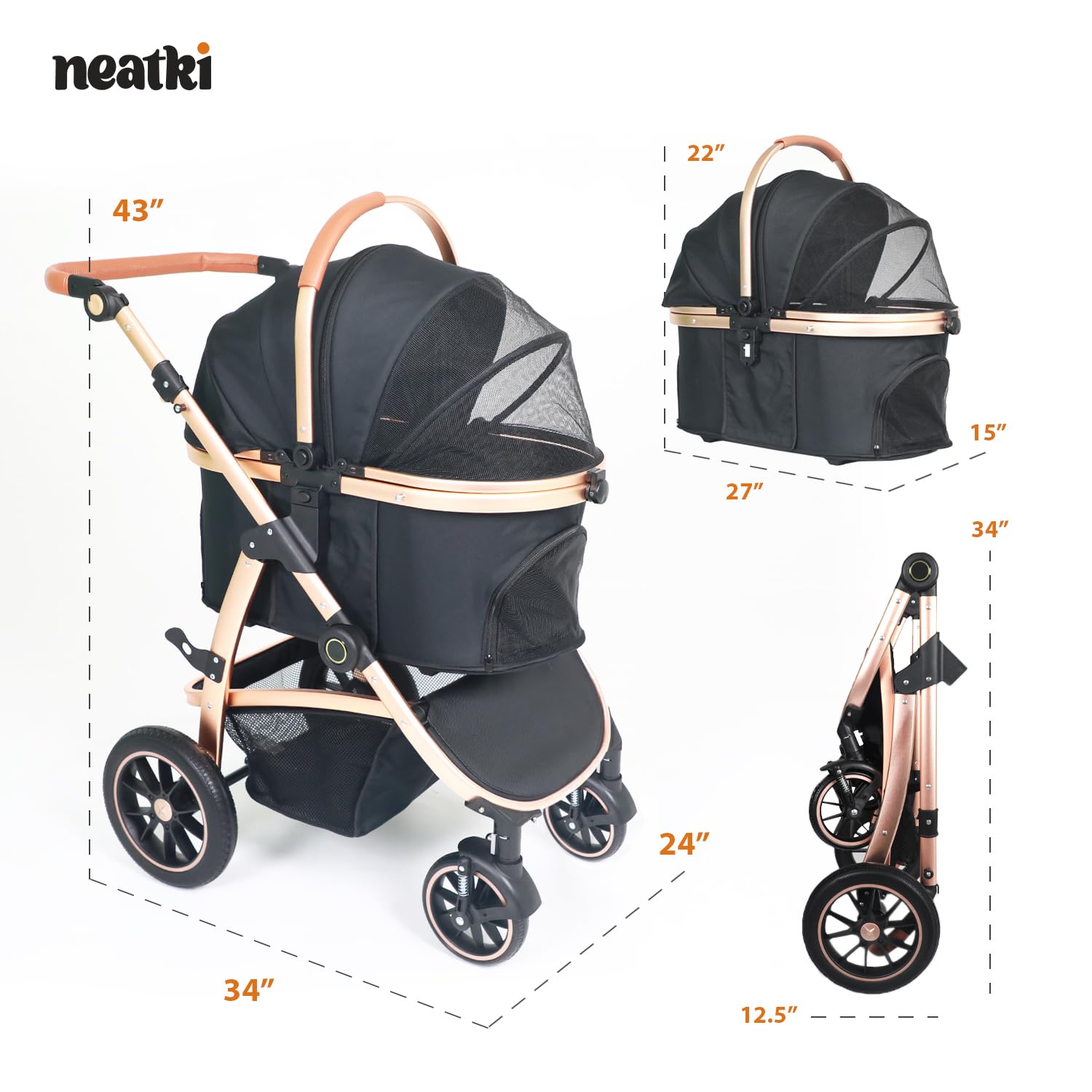 • Multi-Functional Design – Effortlessly switch between a pet stroller, carrier, and a car seat for ultimate versatility. This dog and cat stroller with a removable carrier enhances every adventure for daily walks or convenient travel.