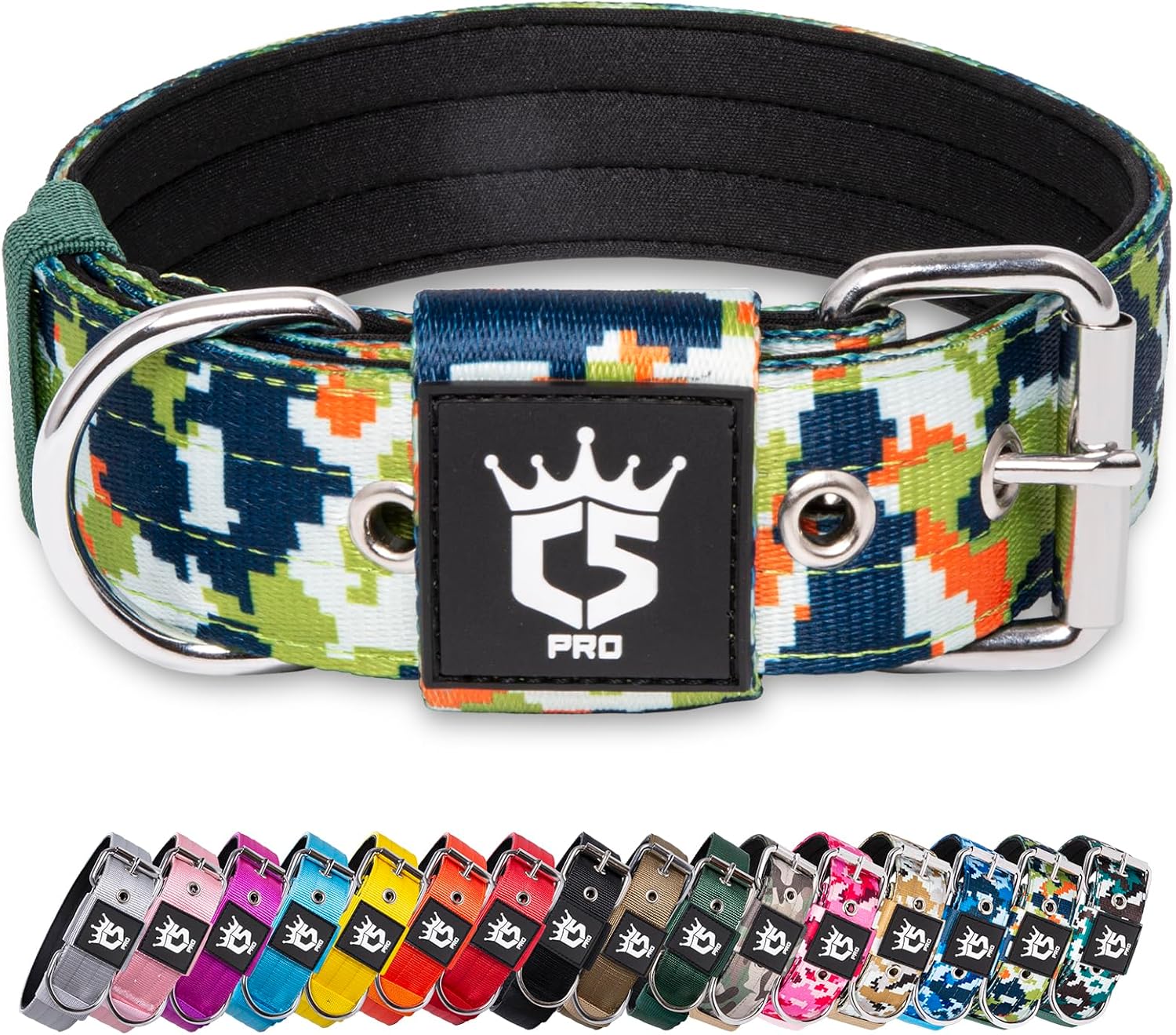 TSPRO Tactical Dog Collar 1.5 Inch Wide Thick Dog Collars with Heavy Duty Metal Buckle, Durable, Strong, Adjustable for Medium to Large Dogs (Camo Green L)