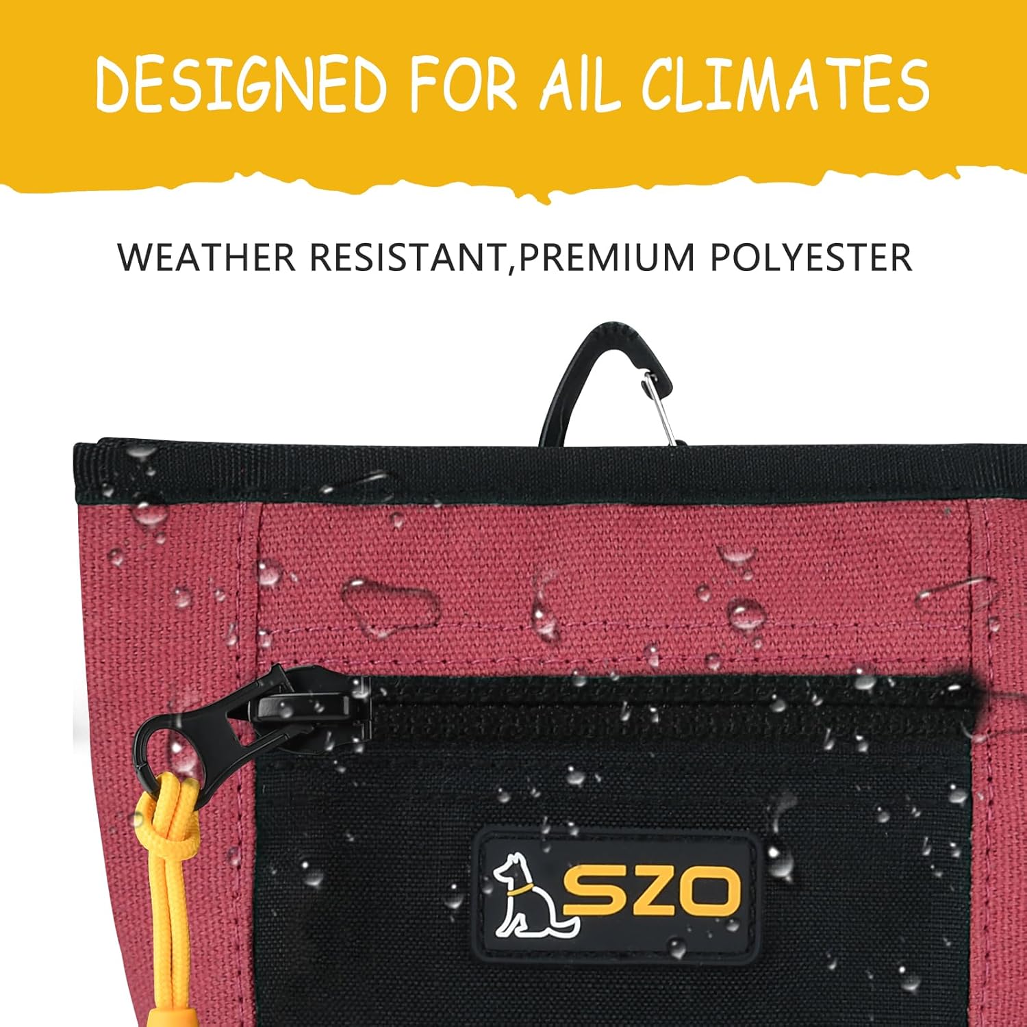 • Easy To Use — SZO dog treat pouch is designed to fit your everyday use when training your pets. It features a magnetic closure, allowing quick and one-handed access to your pet's favorite treats. And a front zipper pocket to secure personal items!