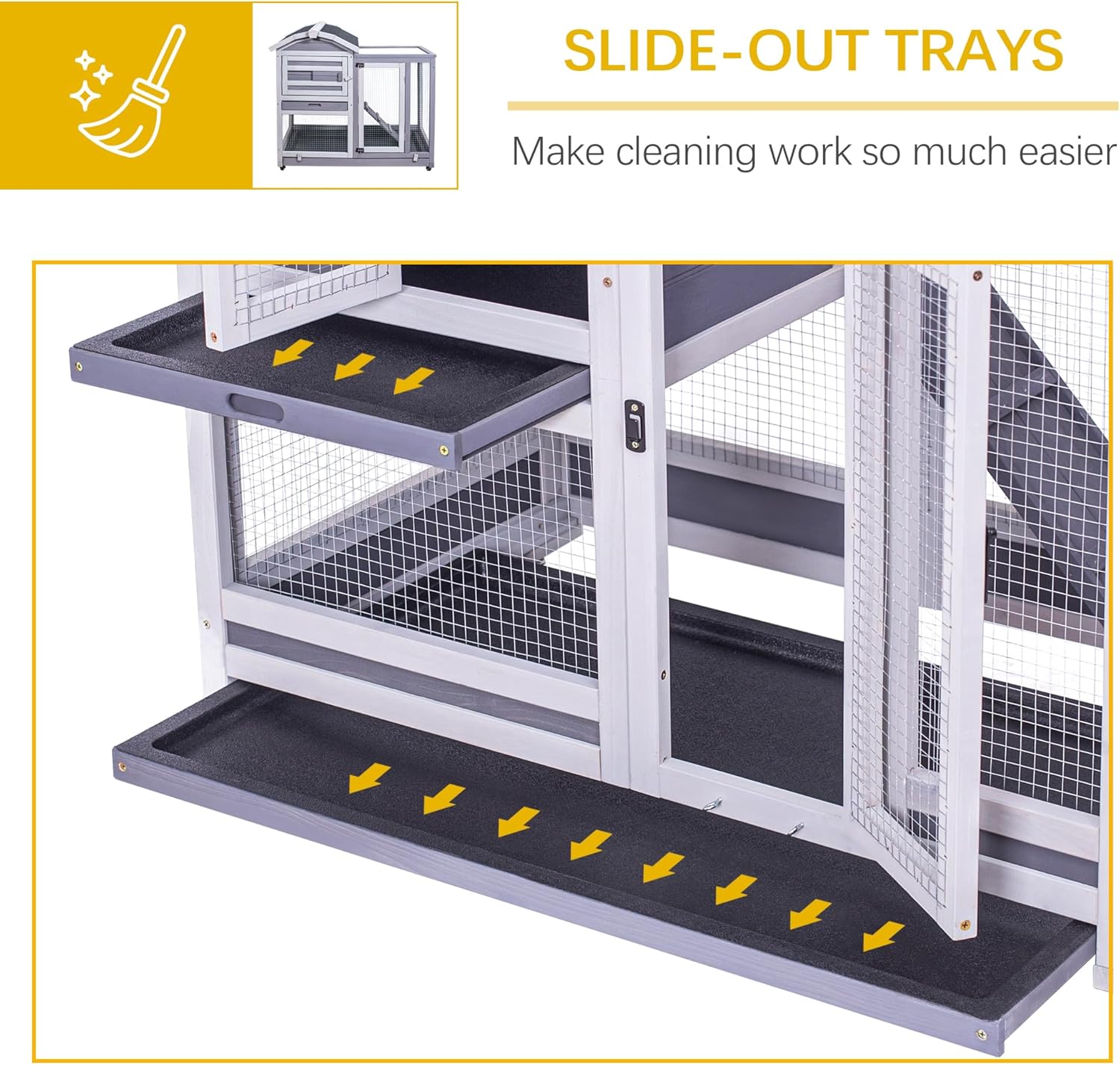• Effortless cleaning: The large rabbit hutch features a removable tray for easy waste disposal and cleaning, maintaining a hygienic environment for pets