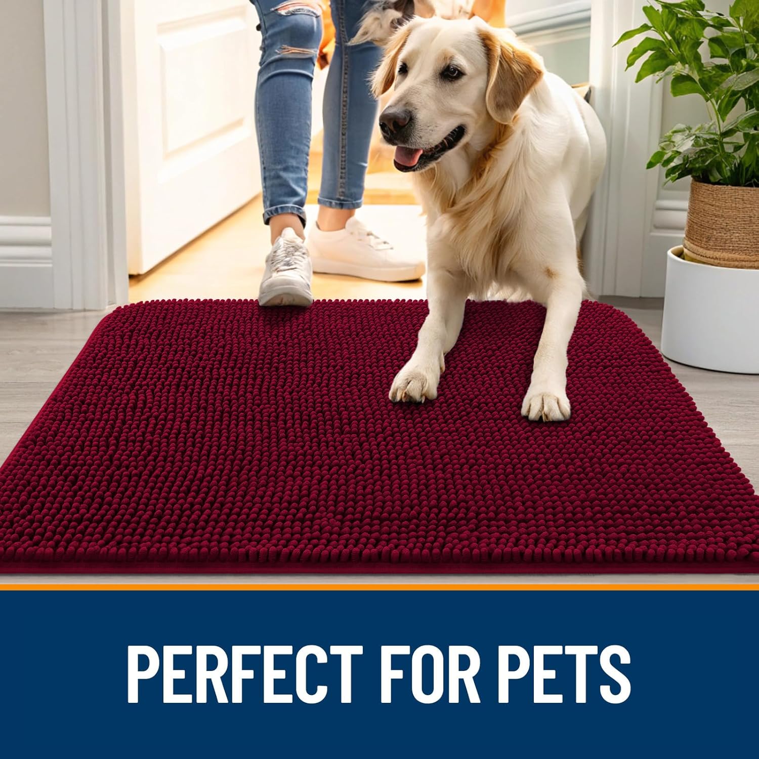 OLANLY Dog Door Mat for Muddy Paws 24x16, Absorbs Moisture and Dirt, Absorbent Non-Slip Washable Doormat, Quick Dry Chenille Mud Mat for Dogs, Entry Indoor Entryway Carpet for Inside Floor, Burgundy