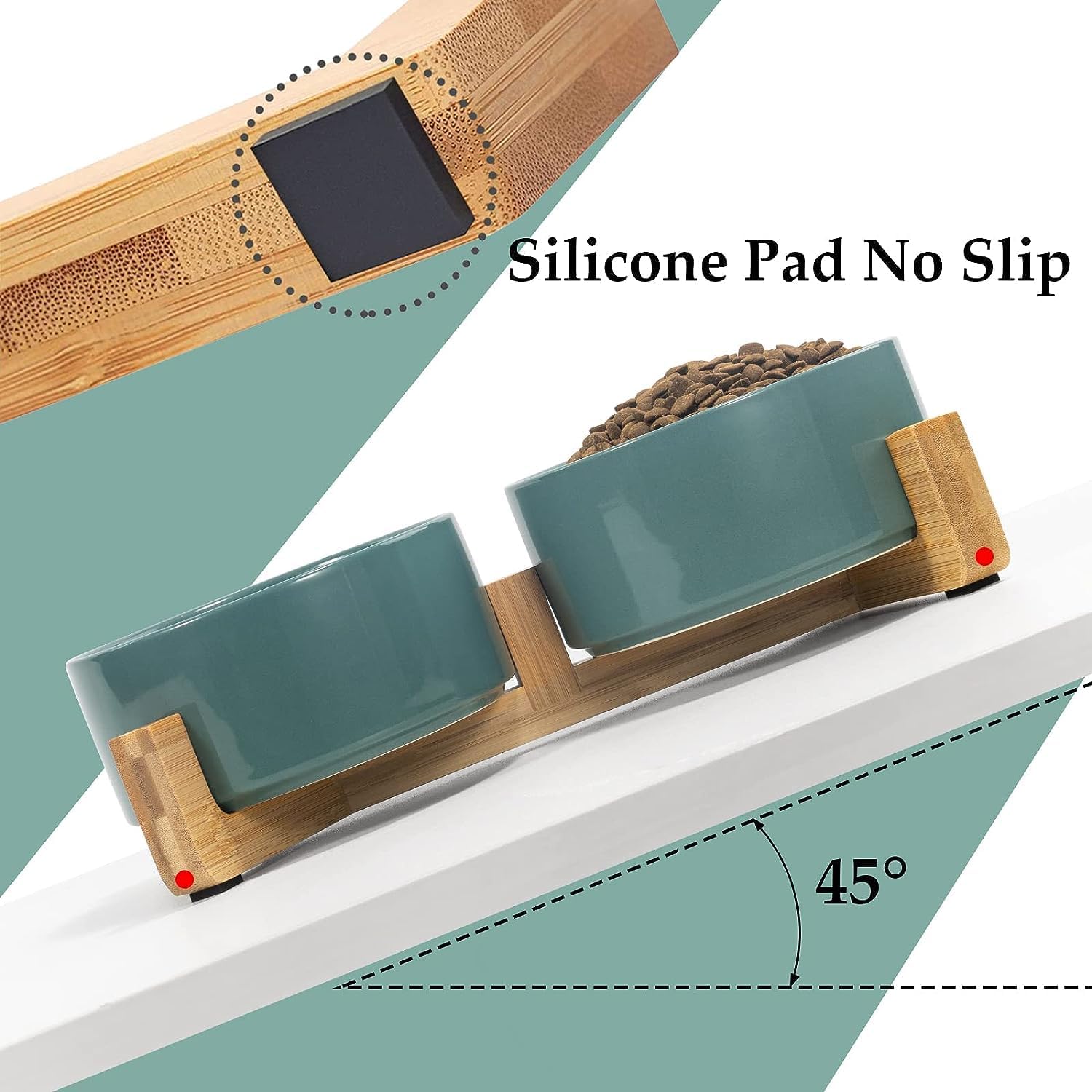 • [Double Bowl Design]:One dog bowl for food and one for water, Each ceramic cat bowl has a Unique wooden stand, raising the dishes closer to your pet for more comfortable eating