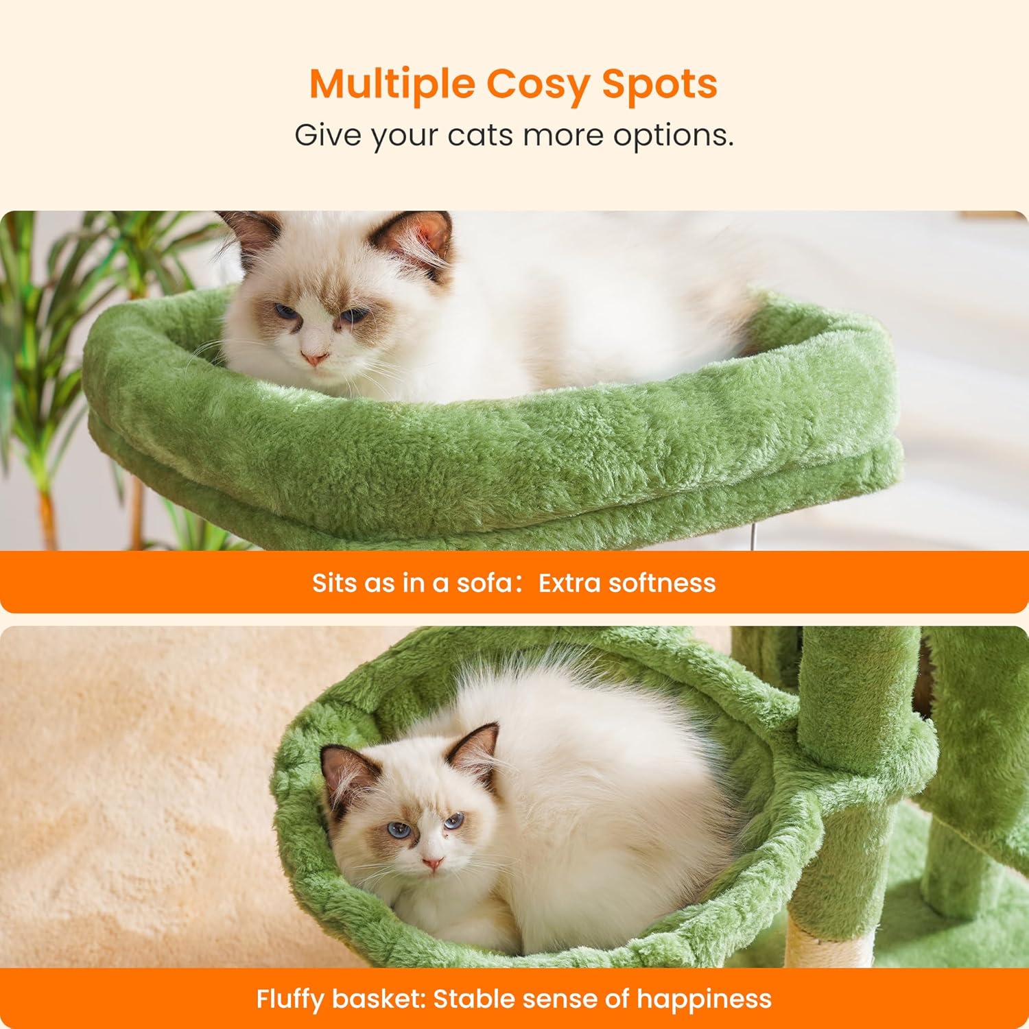 • Lazy Cats Favorite Basket: Cats naturally like the feeling of being wrapped, which makes them feel safe, Heybly The basket of this cat tree is fixed on both sides for more stability and safety.