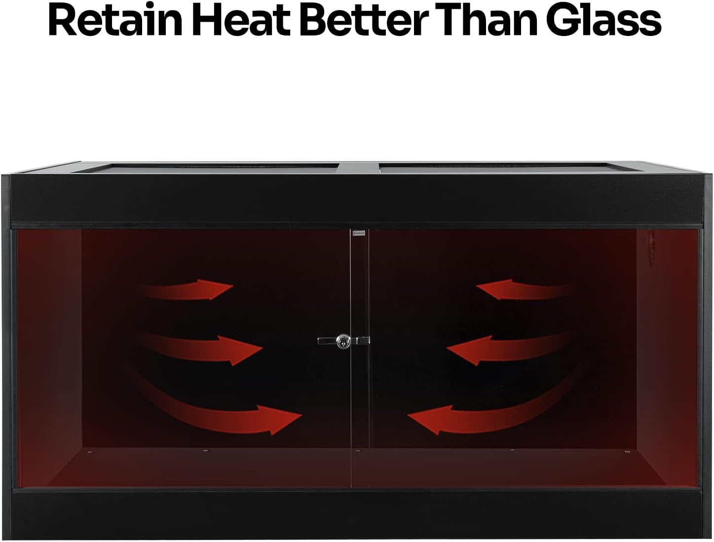 • ใ€Retain Heat Better Than Glassใ€‘Unlike glass or screen enclosures, the thickened wooden reptile enclosure provides excellent heat insulation, more in line with natural reptiles environment. Black and non-reflective surfaces reduce stress in your pets.