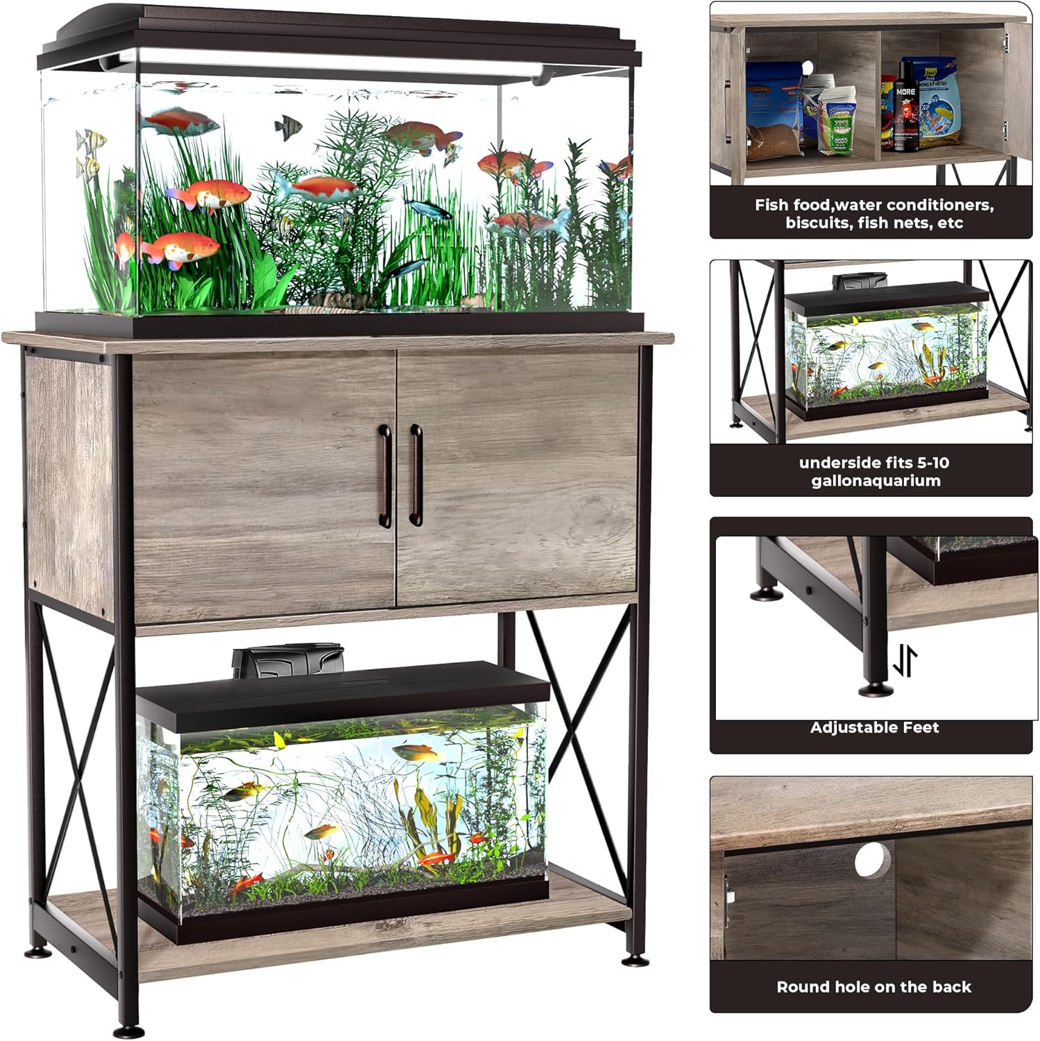 • Modern Appearance: Aquarium stand features a modern Grey design that matches various home decor styles. This design is not only practical but also beautiful, making it the perfect decoration for your home. Tanks not included. Support dimensions: 30.7" x 16.5" x 31.88".