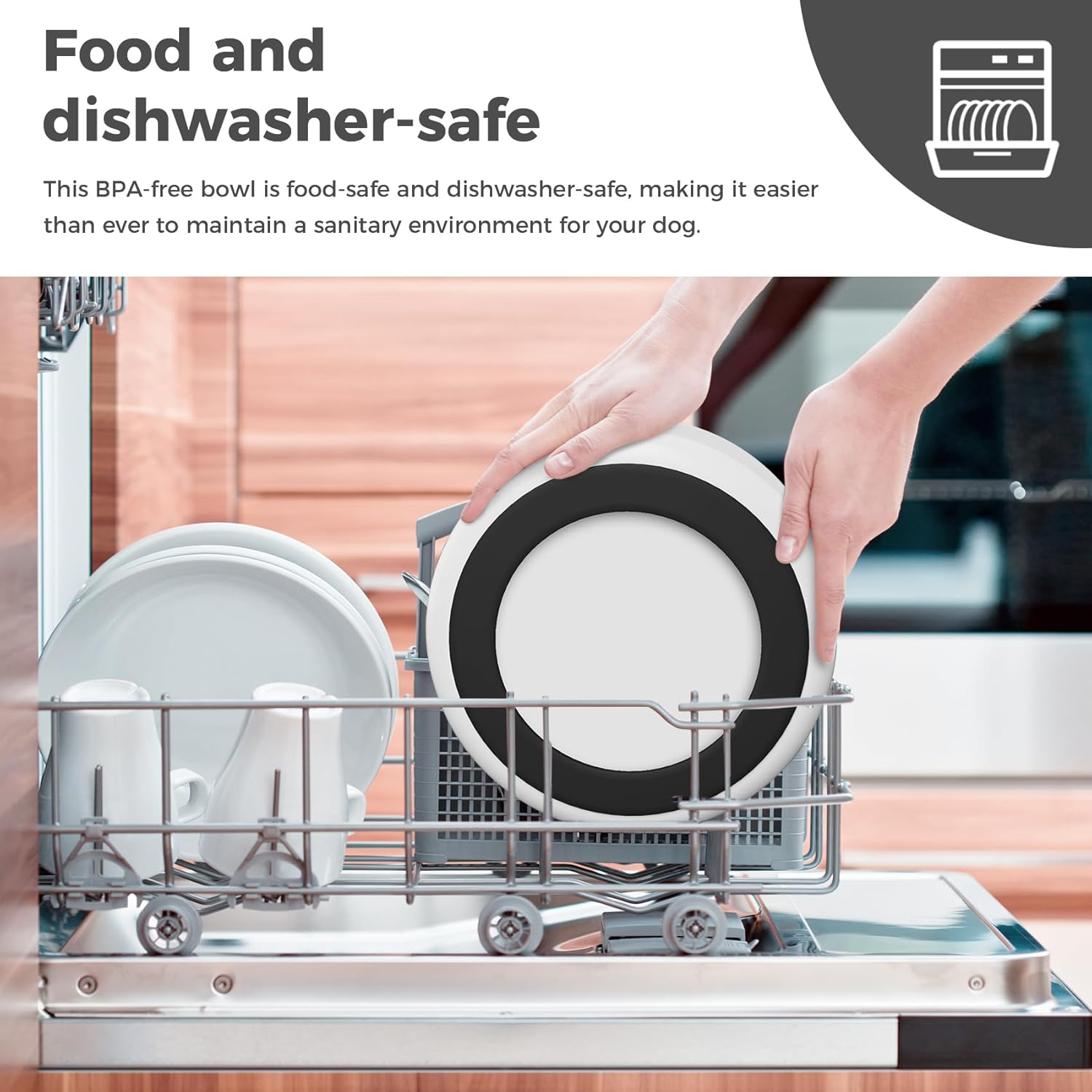 • Non-Slip: The bottom of our dog bowl is made of silicone and will not scratch the floor. Are you afraid that in a quiet resting environment, your pet will make a sound of rubbing against wood and tiles because it eats happily? Our dog bowl basically prevents this situation from happening