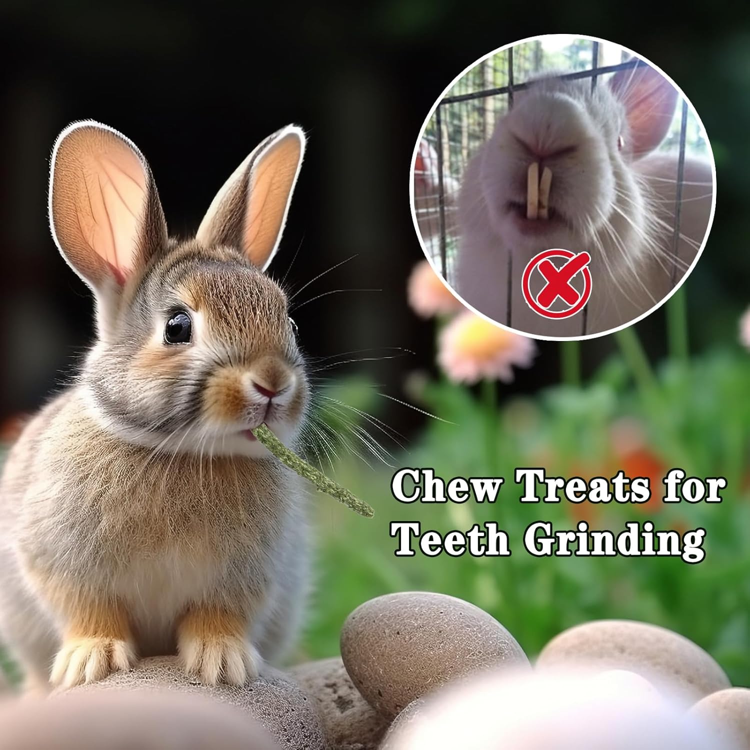 • 【Grinding Teeth】- Hard baked timothy hay pellets, help your rabbits grind incisors. Supporting dental health through natural chewing activity. Thin and long appearance, perfect size for the small mouth of your pets, grind teeth while avoiding bites itself.