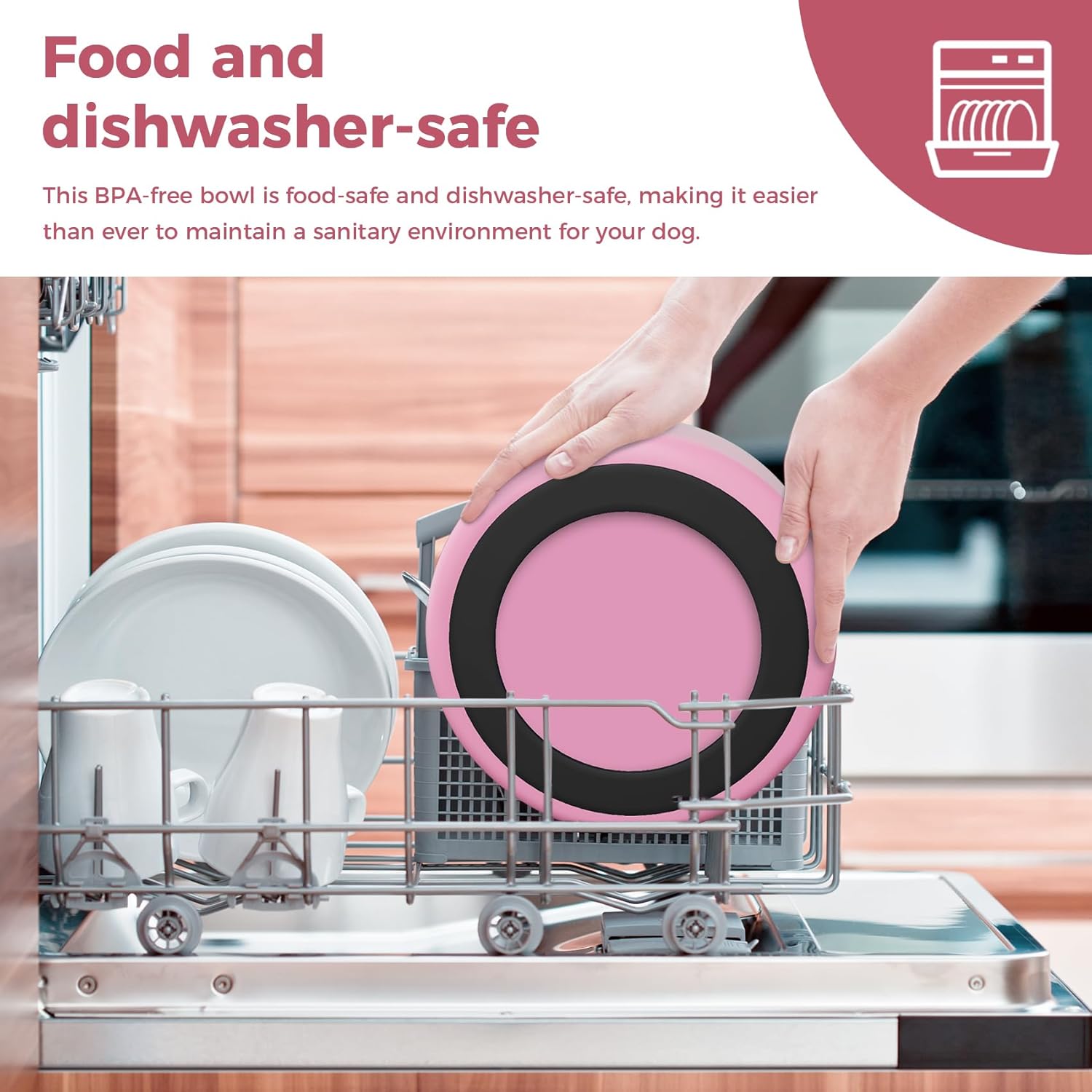 • Non-Slip: The bottom of our dog bowl is made of silicone and will not scratch the floor. Are you afraid that in a quiet resting environment, your pet will make a sound of rubbing against wood and tiles because it eats happily? Our dog bowl basically prevents this situation from happening