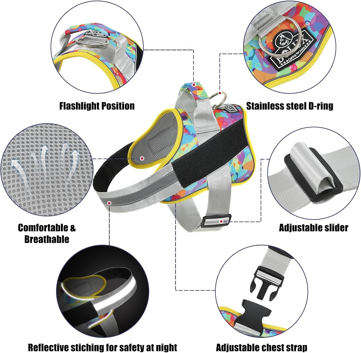 • STURDY HANDLE: The adjustable dog harness with rugged nylon handle further enhances your distance from the dog and is more intimate with each other. Easy on dog harness is also the best partner for dogs and is easy to control your dog.