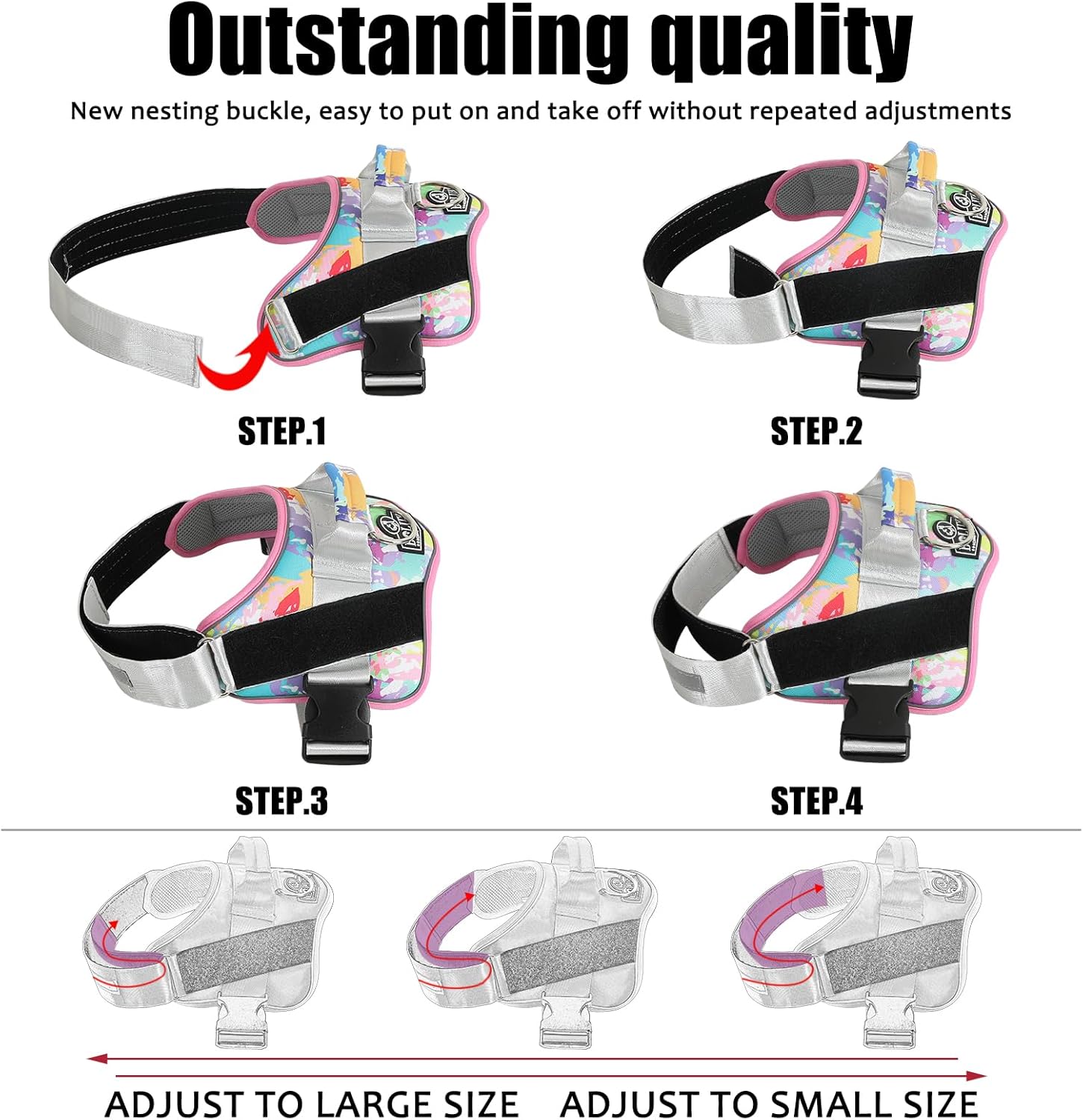 • STURDY HANDLE: The adjustable dog harness with rugged nylon handle further enhances your distance from the dog and is more intimate with each other. Easy on dog harness is also the best partner for dogs and is easy to control your dog.